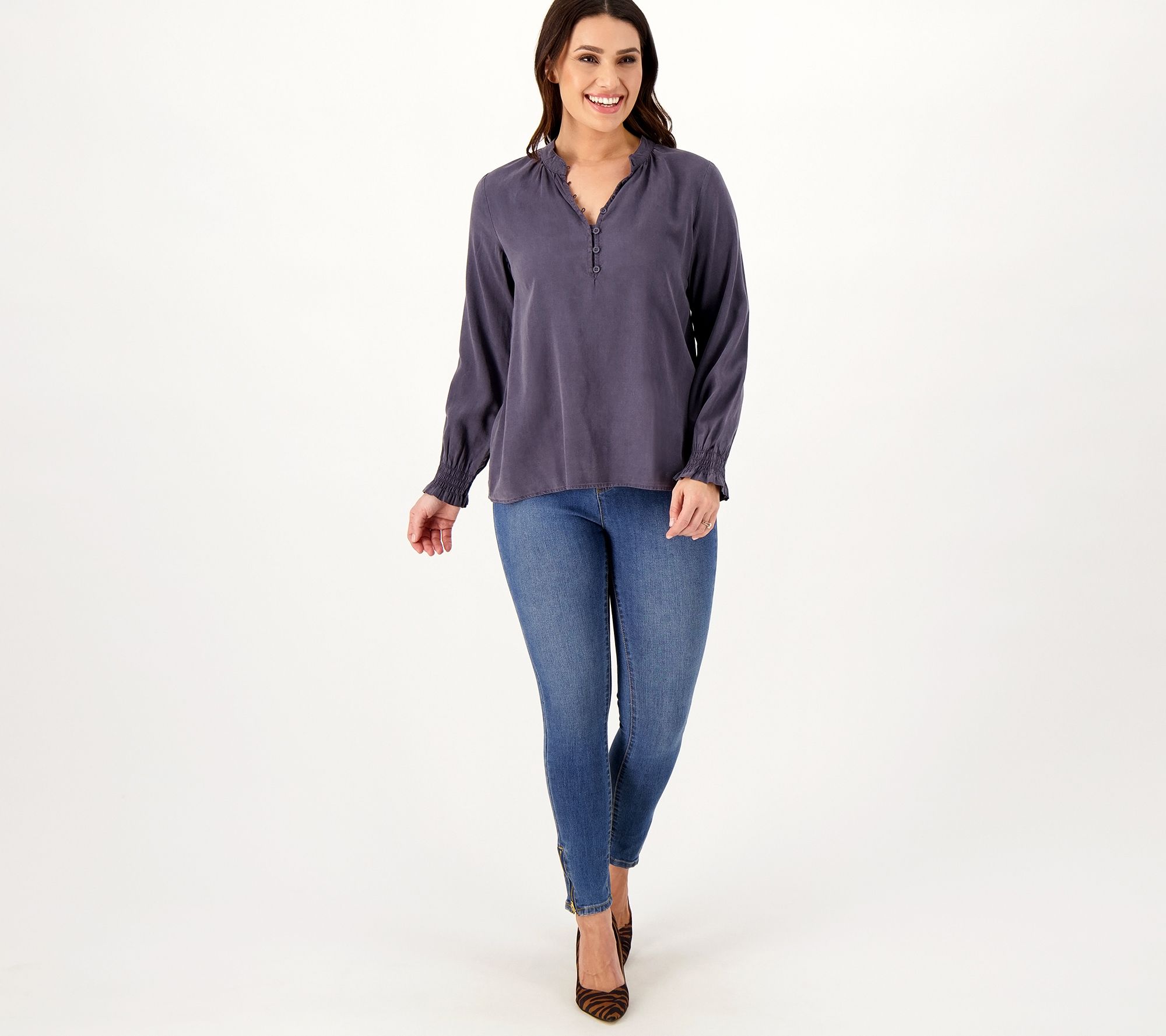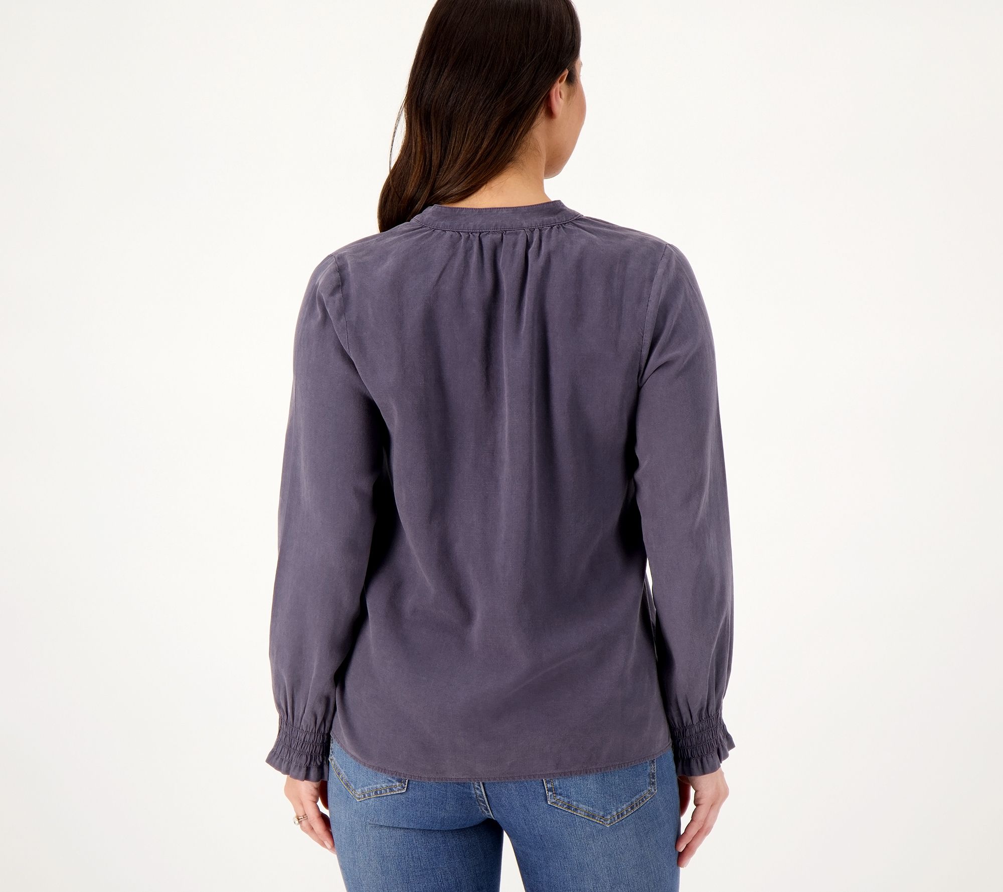 Attention, creatures of comfort! Your stylish side needs some loving, too. Try this pullover blouse on for size. Smocked cuffs and a half-placket design give you the cozy, cute vibe you crave. From Side Stitch.