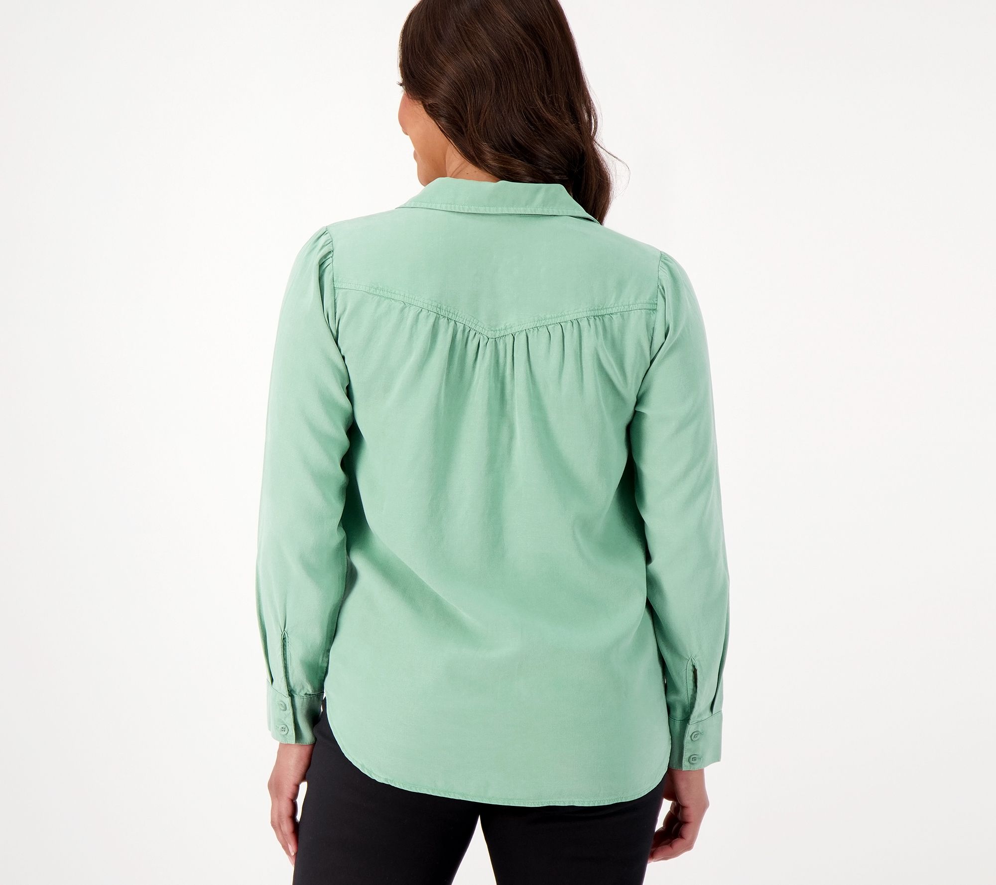 Overachiever? You could say that about this button-down wardrobe essential. This lyocell shirt goes way beyond agreed-upon goals, with soft shirring detail on the front and back yokes exceeding our everyday expectations. From Side Stitch.