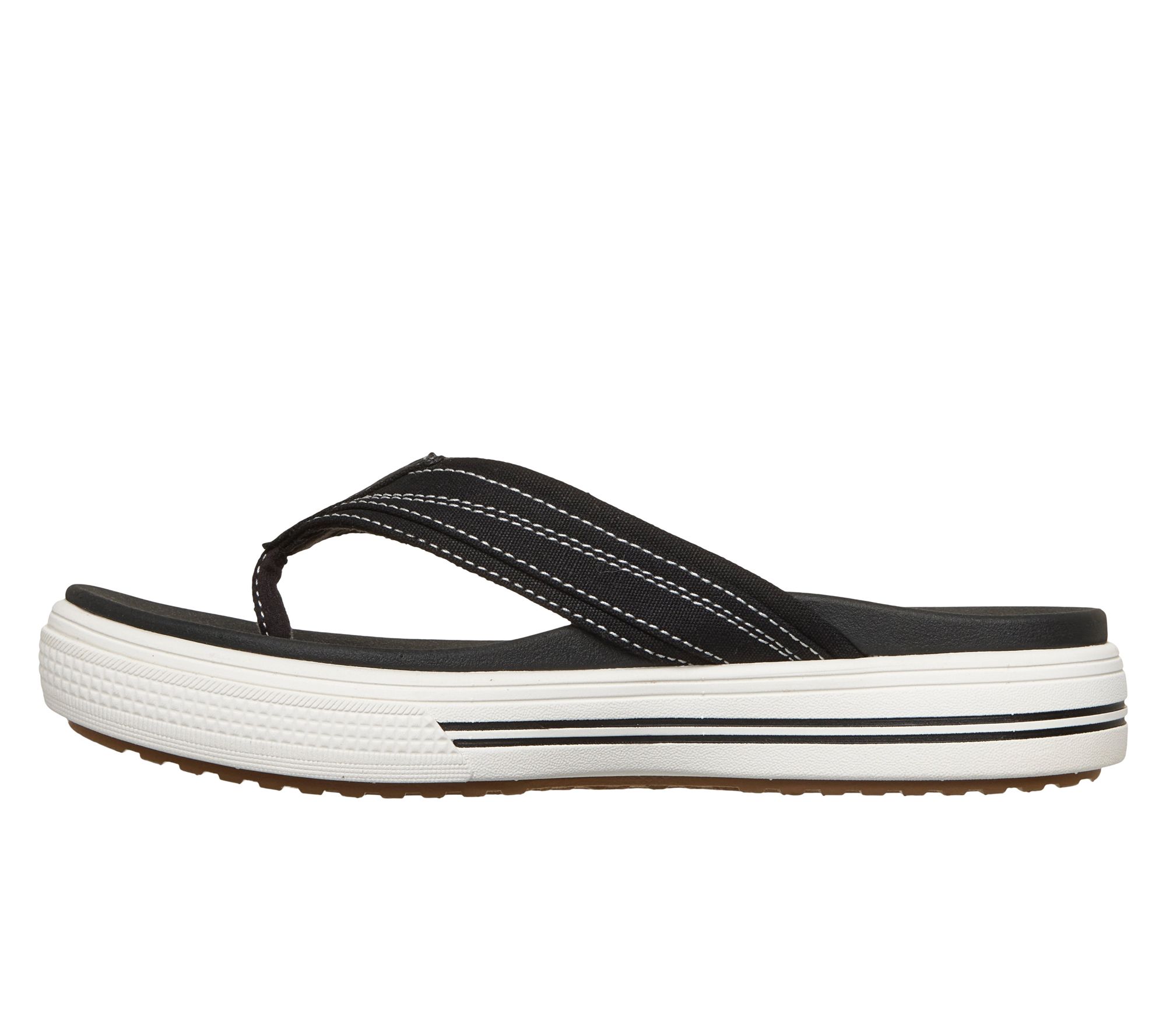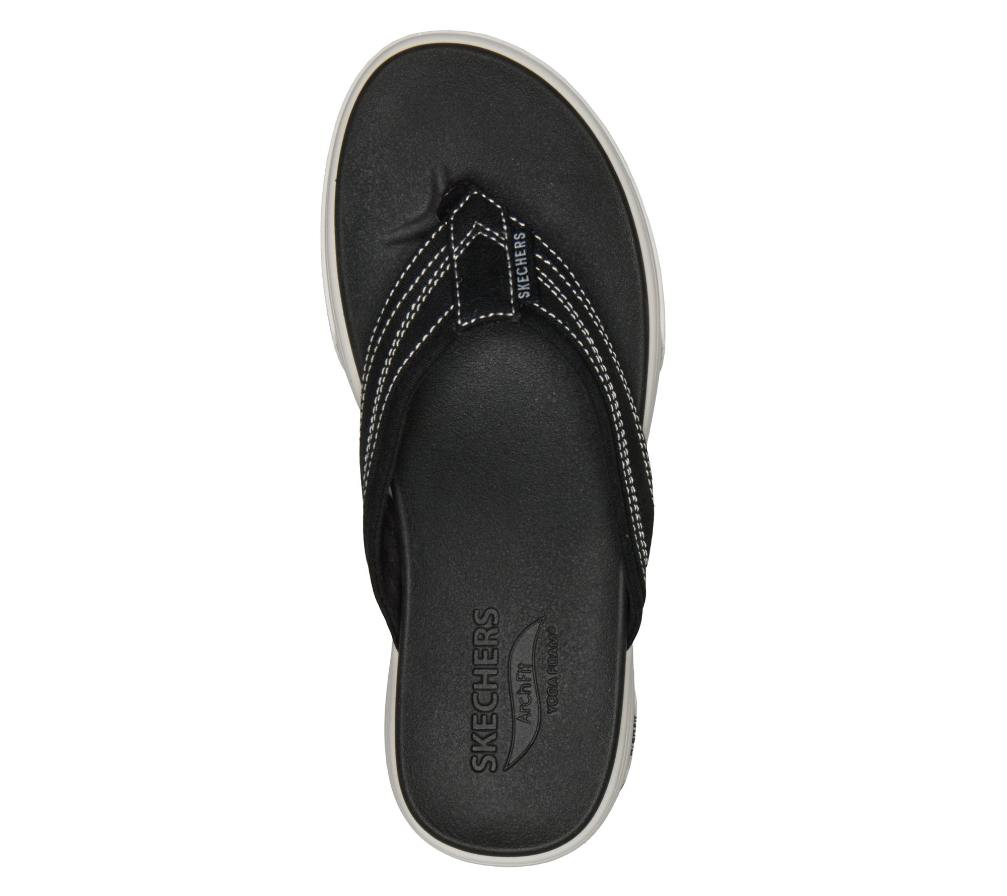 Sunset strolls and weekend getaways become more enjoyable with these thong sandals, delivering supportive comfort matched by classic, effortless style. The Arch Fit footbed and plush Yoga Foam cushioning team up to help make every step feel easy, while the canvas upper with contrast stitching adds a relaxed vibe for warm-weather plans. From Skechers.