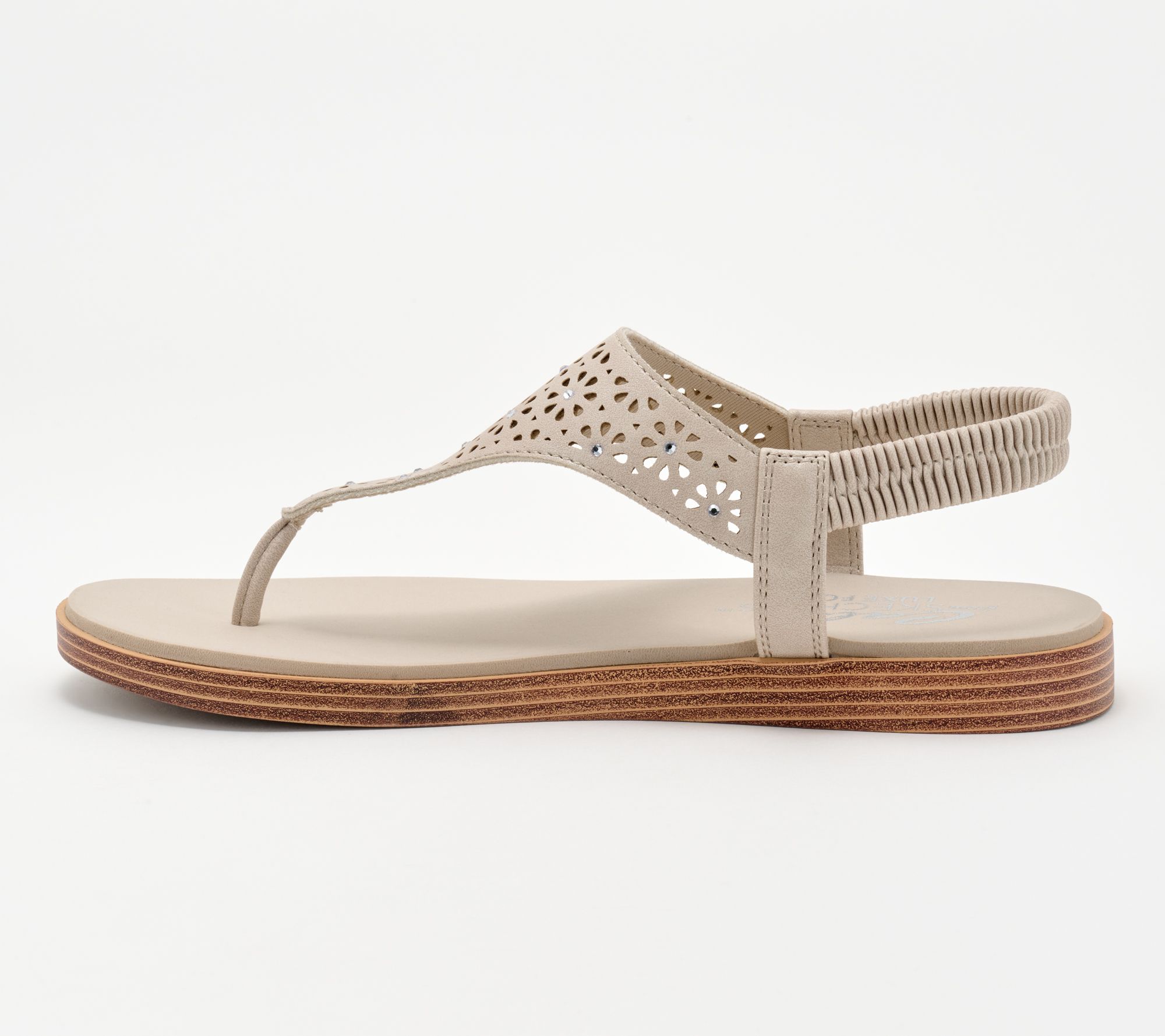 • Floral cutouts, slingback design
