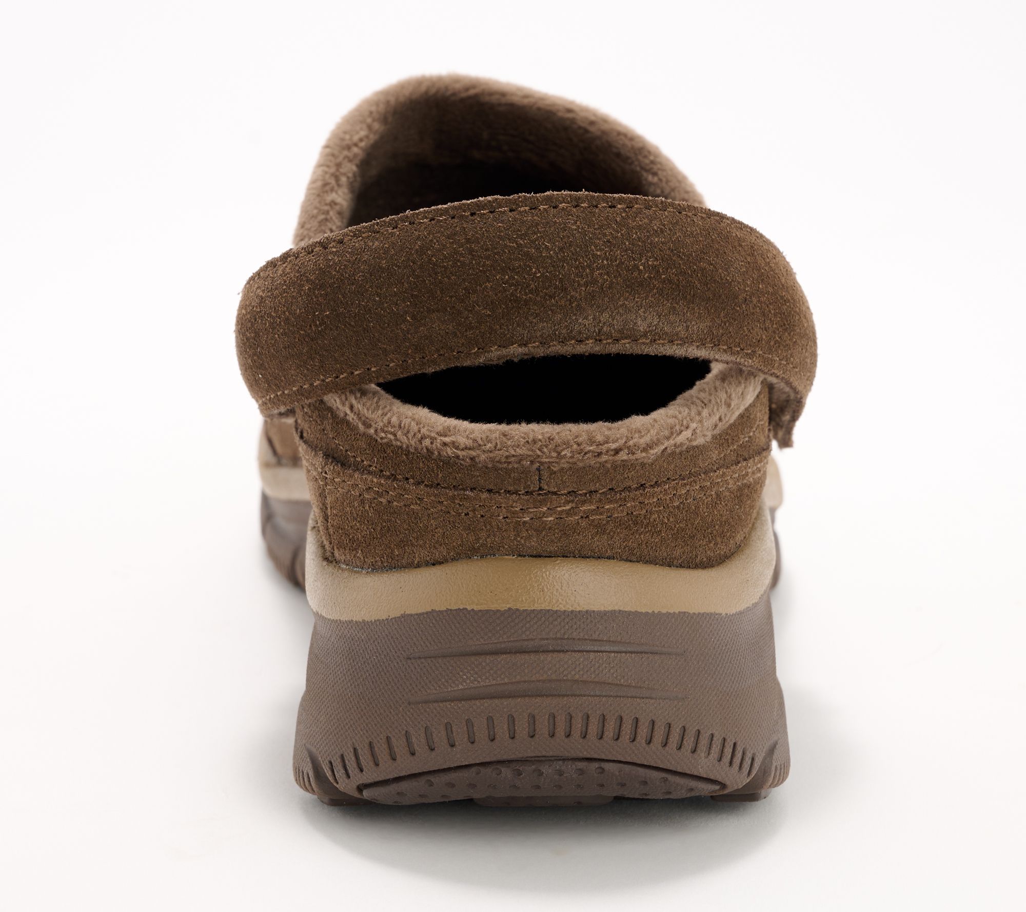 Enjoy nonstop comfort during busy afternoons or relaxed evenings -- even when a shower's in the forecast -- with these water-repellent suede mules. The foldover strap design pairs with a plush lining and a cushioned Memory Foam footbed, making every step down the hallway or to the store feel cozy and inviting. From Skechers.