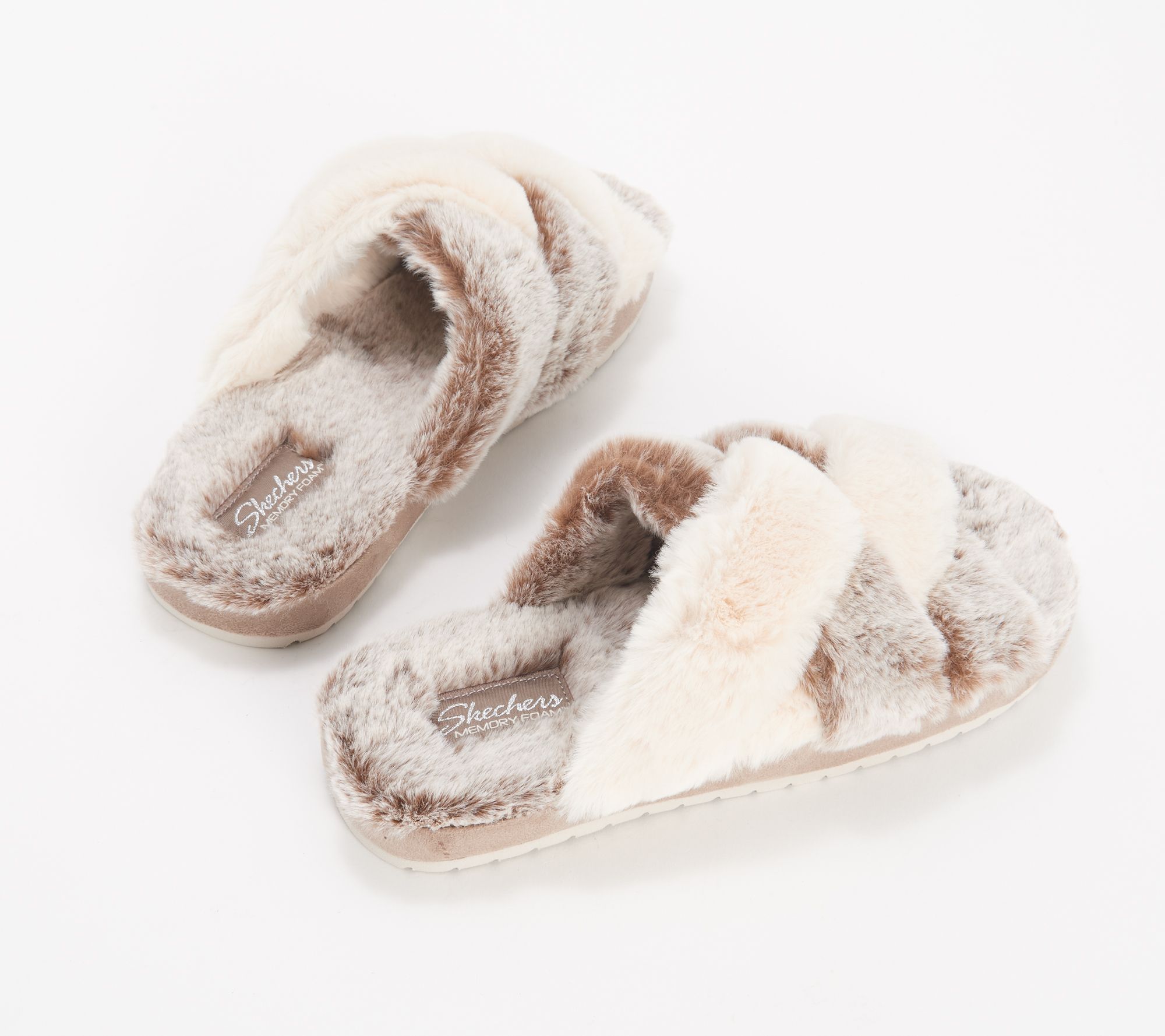 "As Is" Skechers Faux Fur Cross Strap Slippers - Cozy Slide