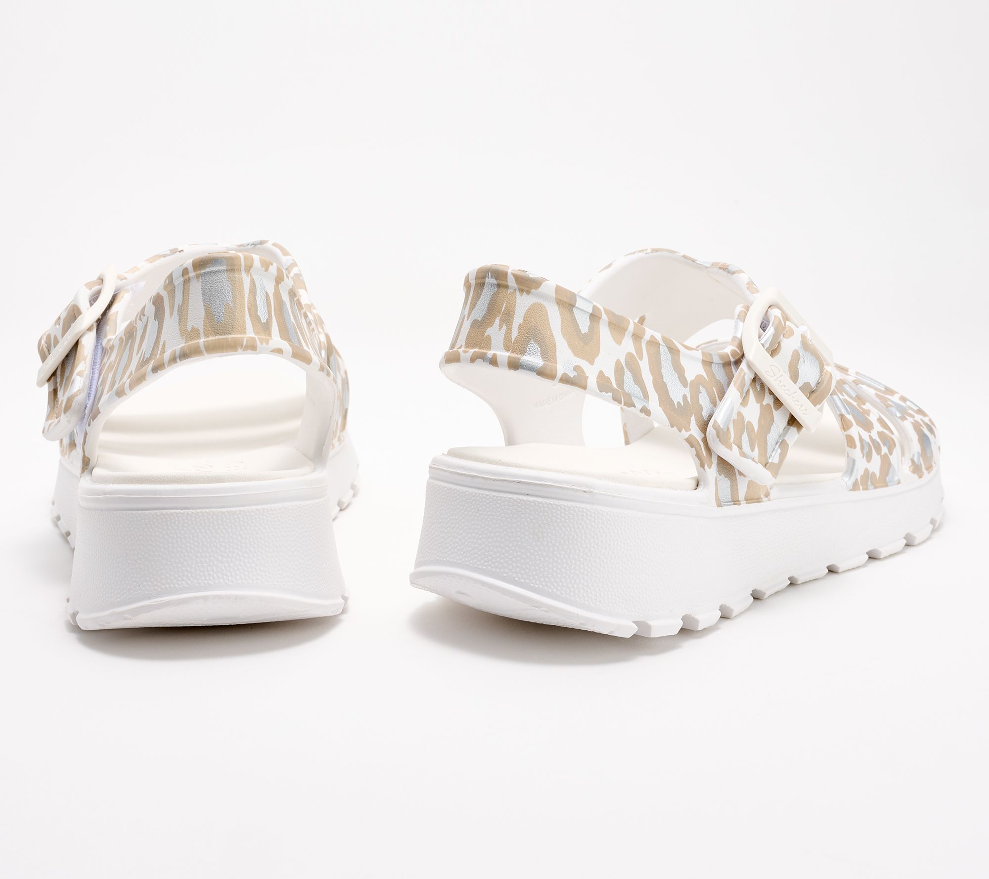 So fierce -- and so fun! Show your wild side and sport these flexible foam sandals featuring a lively allover leopard print. And don't be afraid to take the path less traveled -- they're washable! From Skechers.