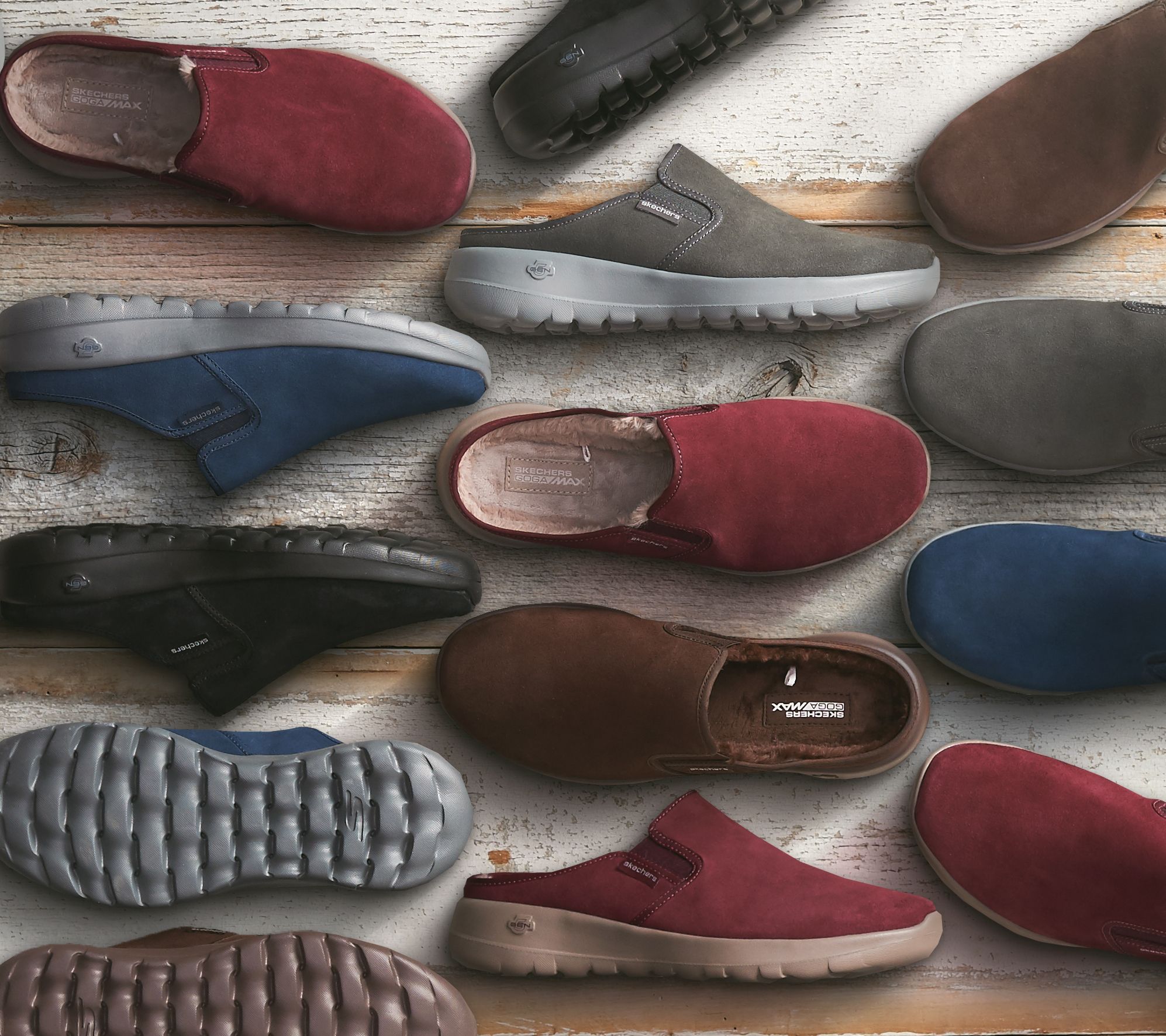 Bring some Joy to your world in these Snuggly clogs. Slip into the soft faux fur lining as you comfortably pad through your day. If that day is a little gray, not to worry, the water-repellent suede will help keep these shoes looking their best. From Skechers.