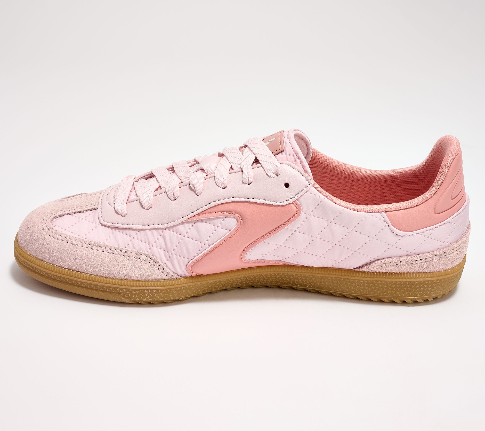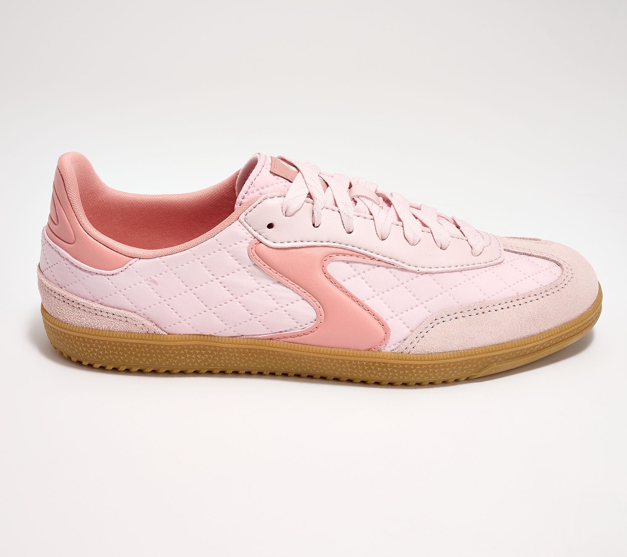 • Lace-up court style, woven quilted upper, suede overlays, contrast S quarter logo