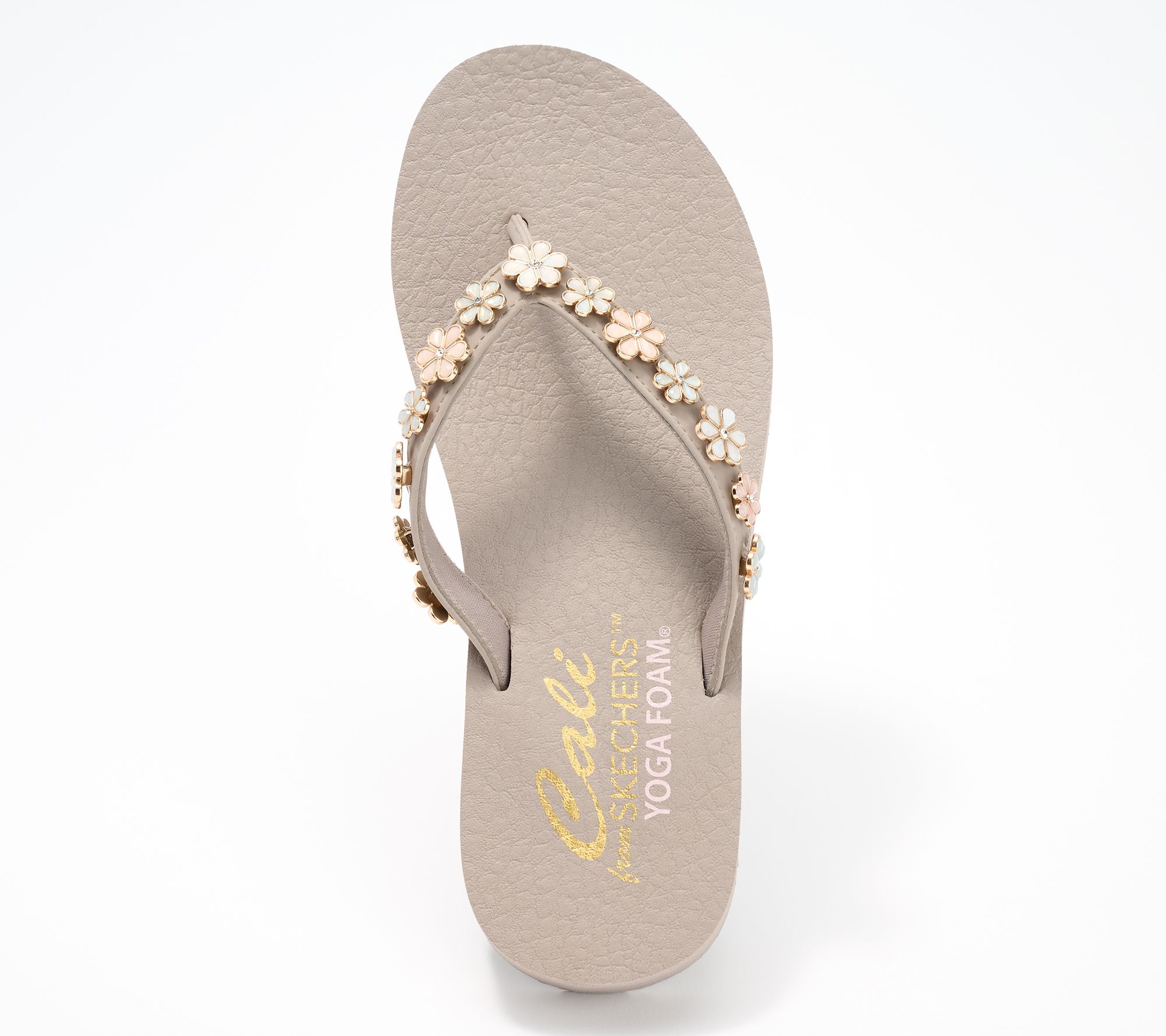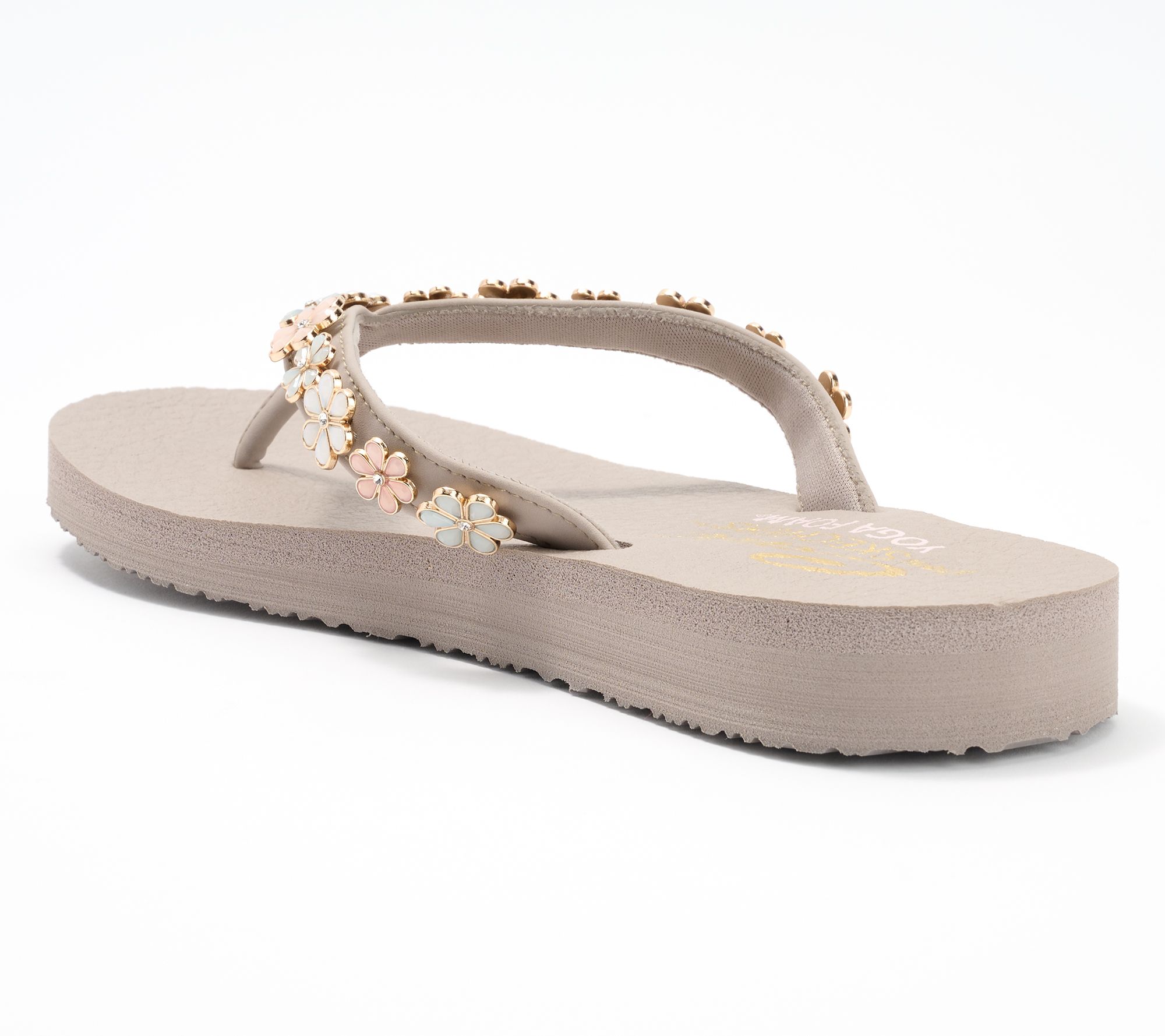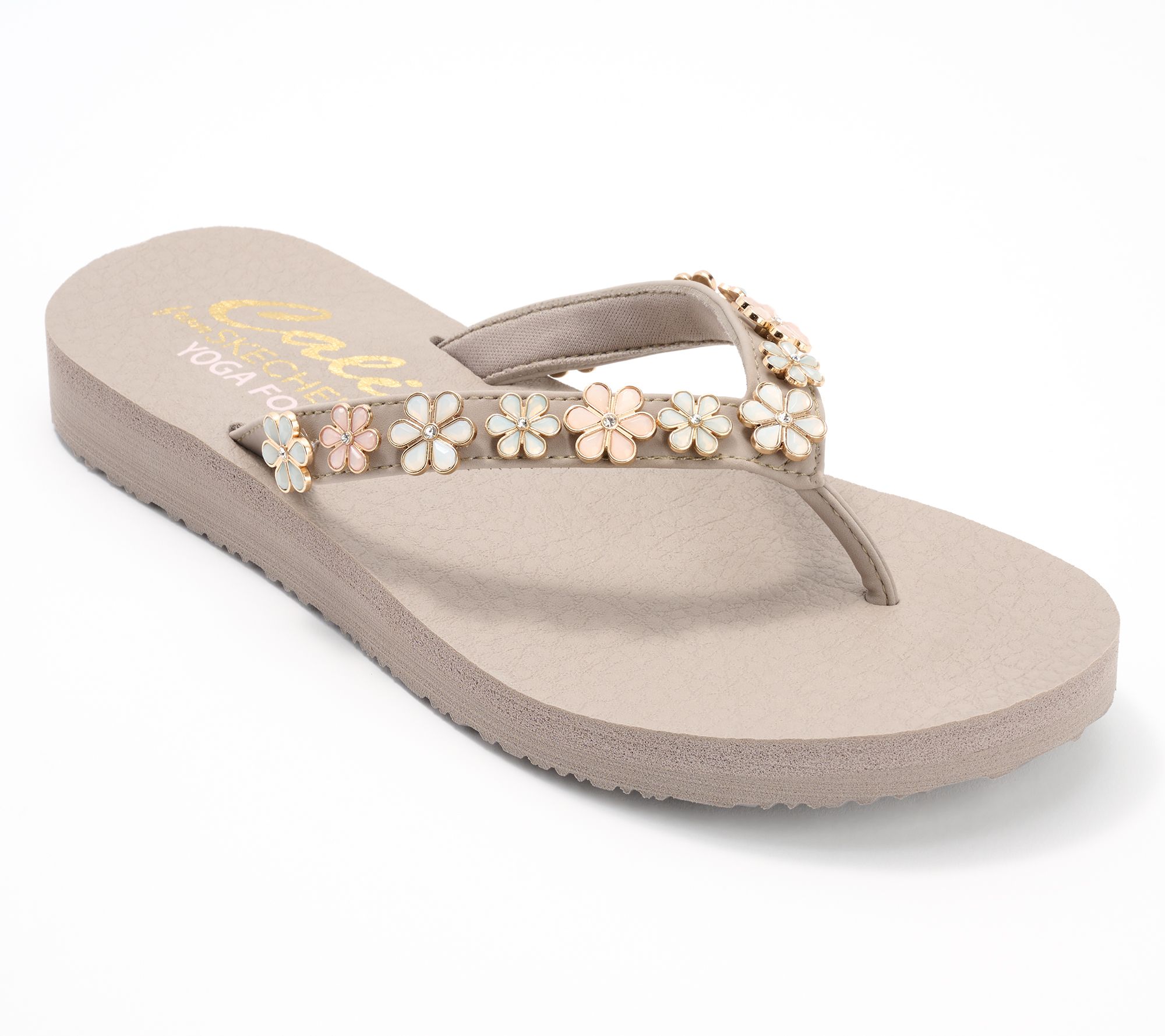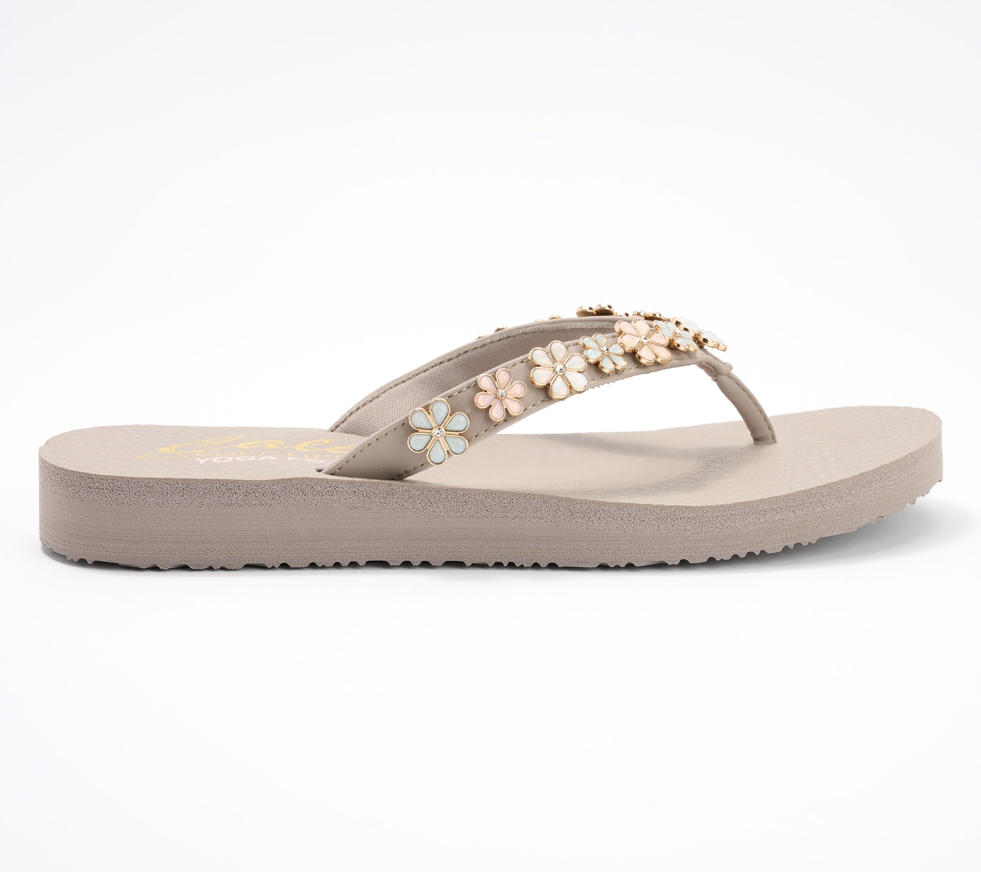 Extend the bliss beyond the mat in these yoga foam-cushioned thongs with charming daisy embellishments. From Skechers.