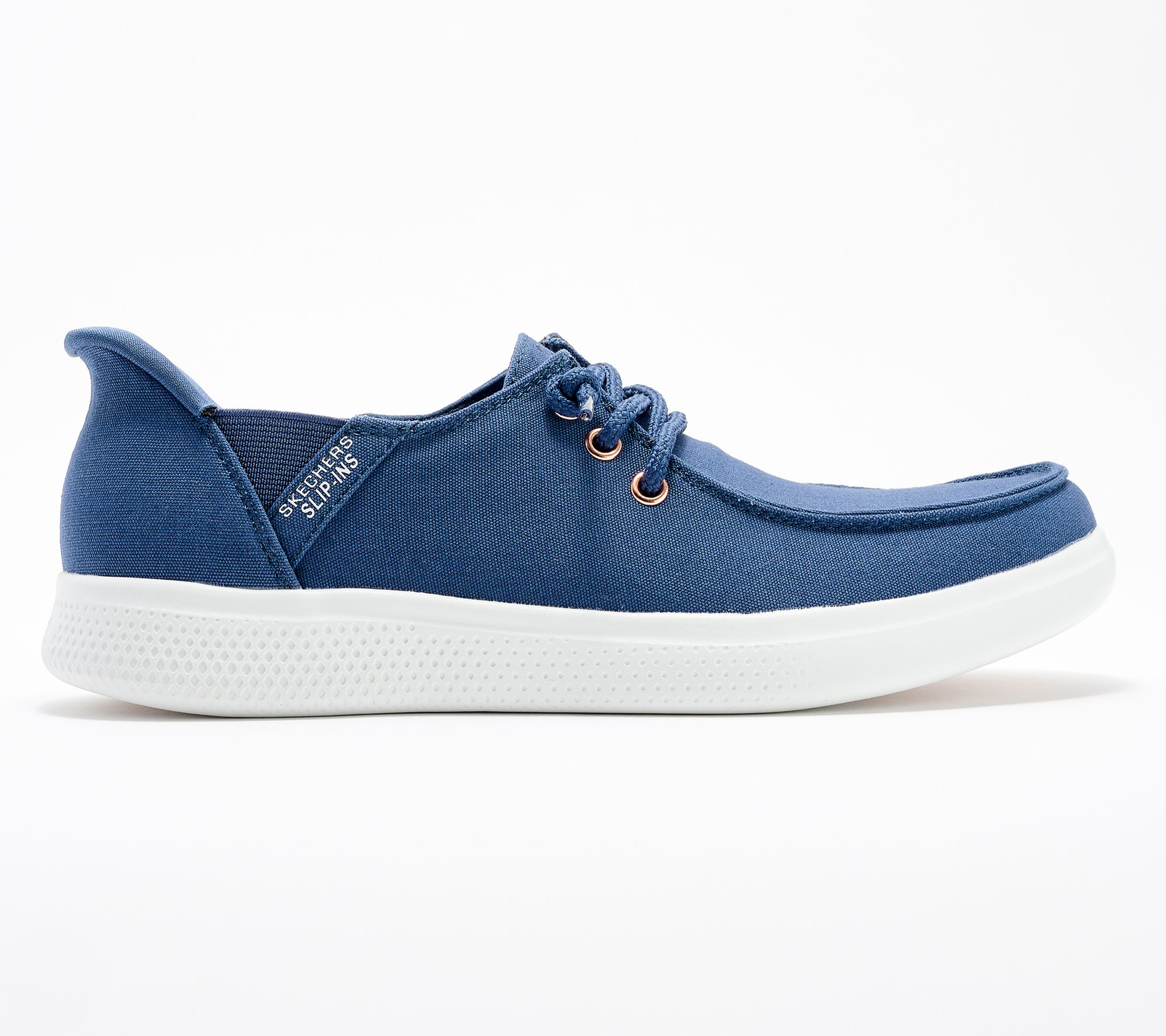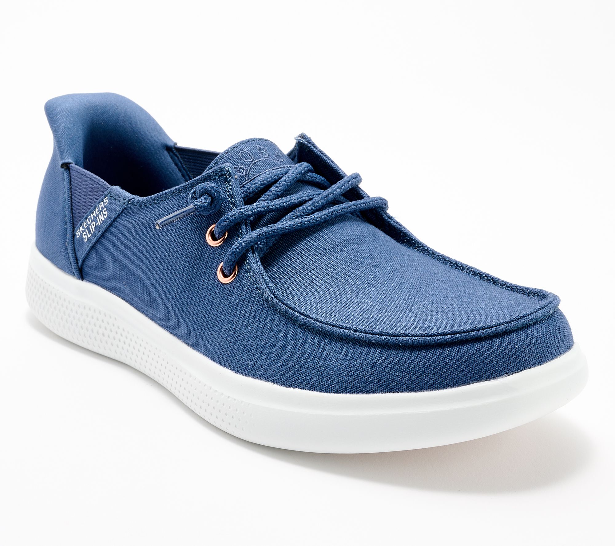Coast through summer in these canvas Slip-ins inspired by classic boat shoes. Skechers' iconic heel pillow and and memory foam footbed bring the breezy comfort to evenings on deck, sandy destinations, and summer barbecues. Splashed by salt water or a tropical drink? No worries, they clean up right in your washing machine! From Skechers.