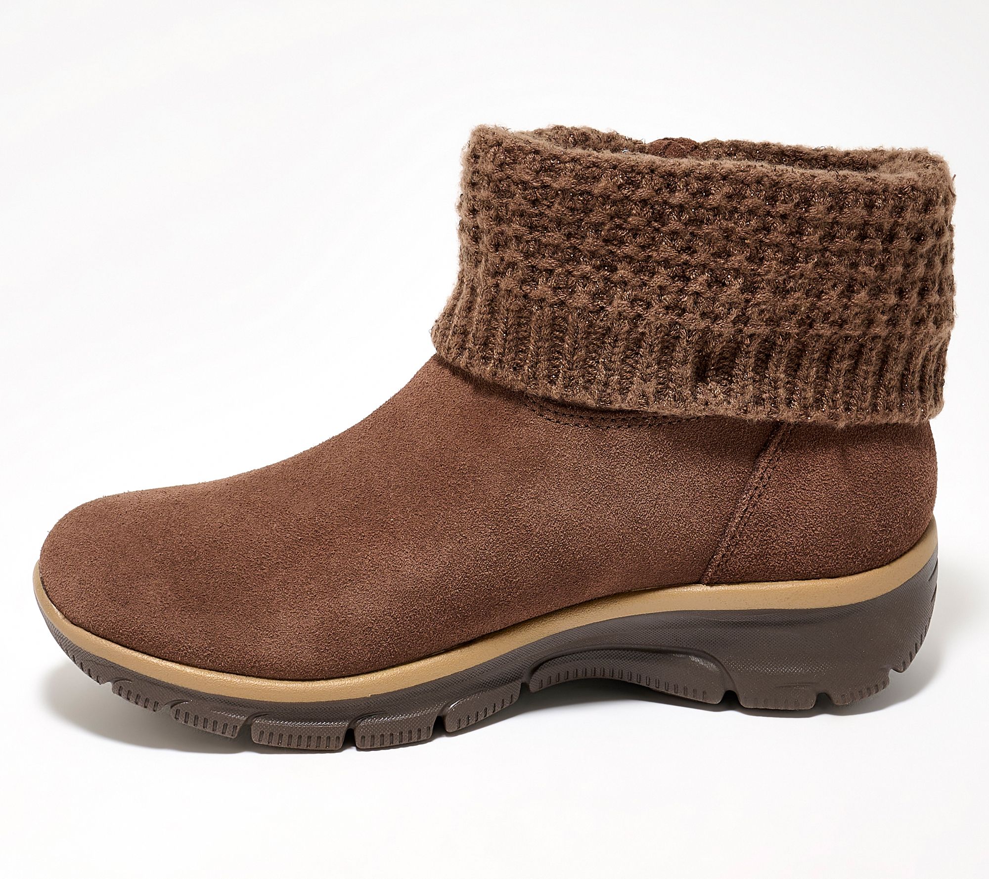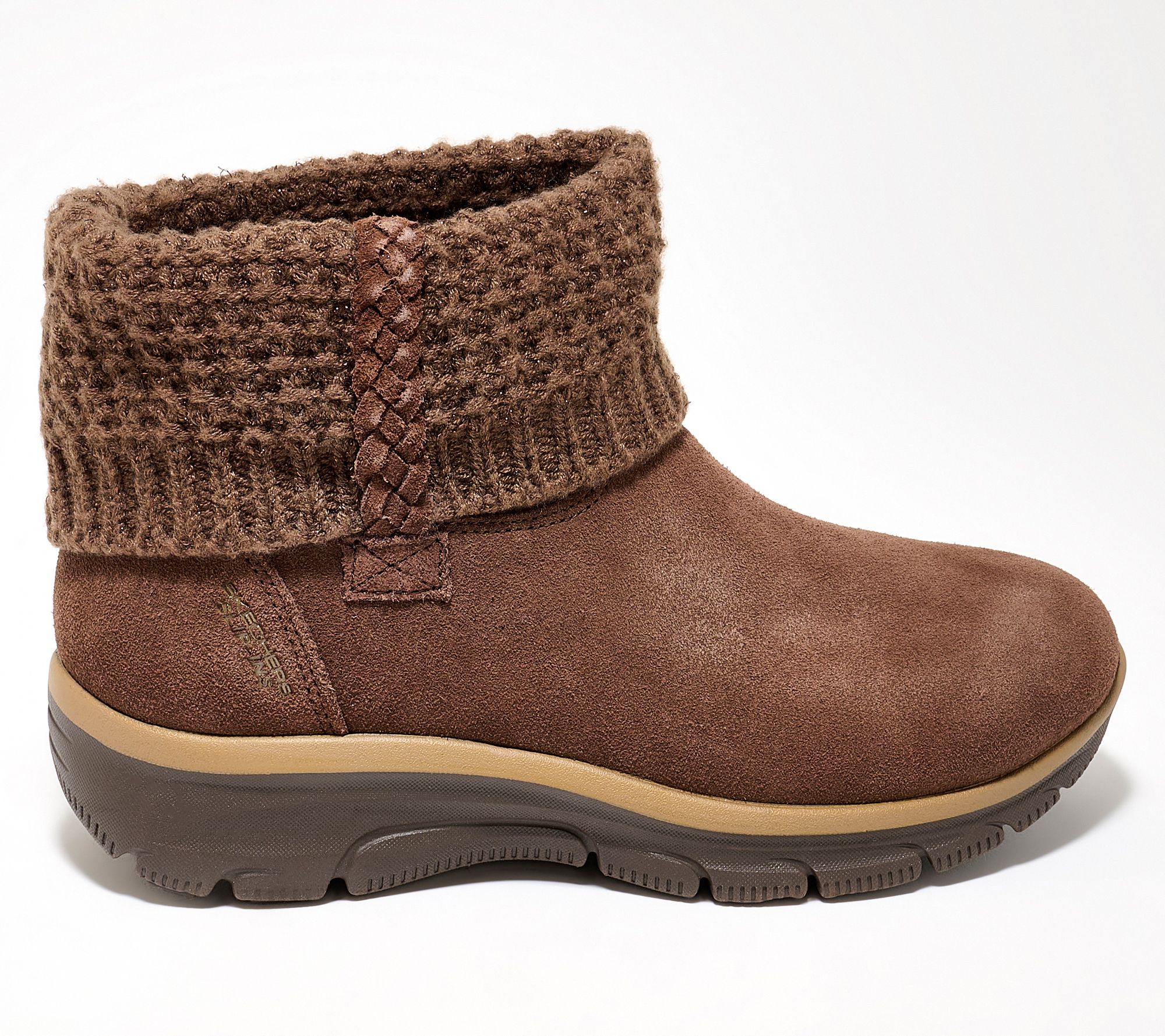 Cool-weather strolls and last-minute coffee runs feel cozier in these water-repellent Slip-ins boots. The relaxed fit and memory foam insole provide all-day comfort, while a suede upper with sparkle sweater knit trim and soft faux-fur lining invite you to slip in and go. Designed for hands-free wear, this boot meets your pace, wherever the day leads. From Skechers.