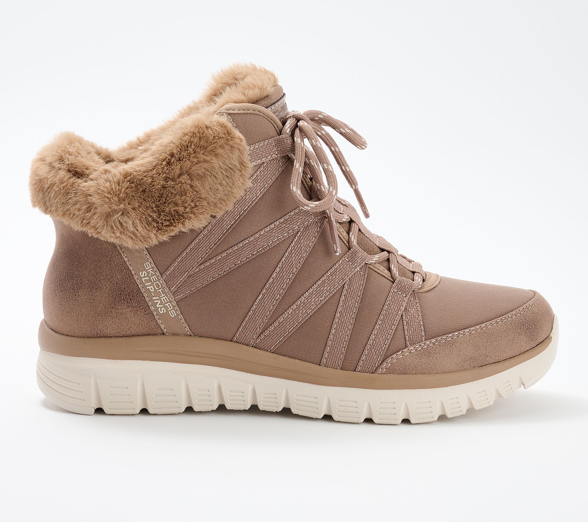 Enjoy easy-wearing comfort on your casual strolls with these Slip-Ins hiker boots. Featuring exclusive Heel Pillow technology, they're your go-to for quick, hands-free entry. The water-repellent design is joined by faux-fur trim and cushioned memory foam to enjoy a cozy, comfortable experience. From Skechers.