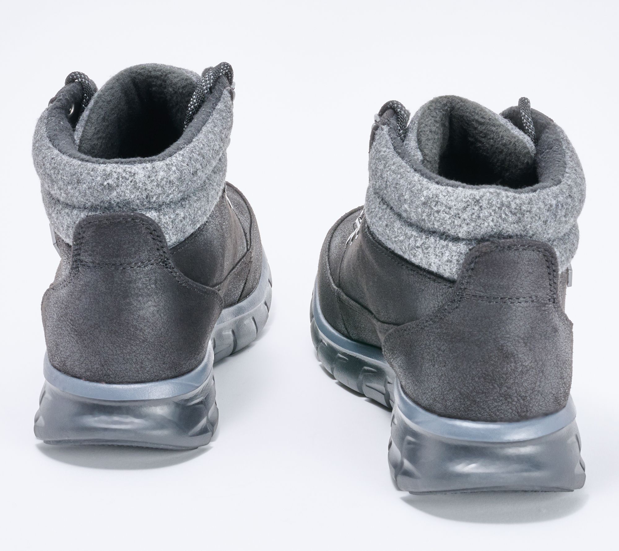 • Lace-up style, water-repellent, slip-resistant, microleather fabric upper, padded collar, knit trim