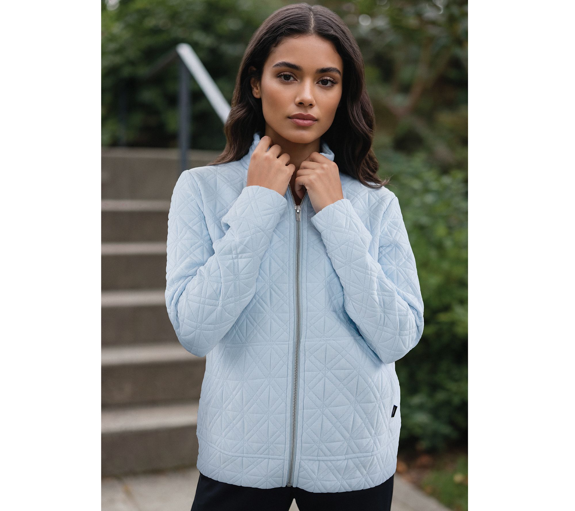 Brisk mornings and busy afternoons alike feel cozier with this knit jacket layered over your go-to staples. Soft stretch fabric moves with you throughout your daily routine, while a mock neck and two pockets add functional details for errand runs or coffee with friends. From Skechers.