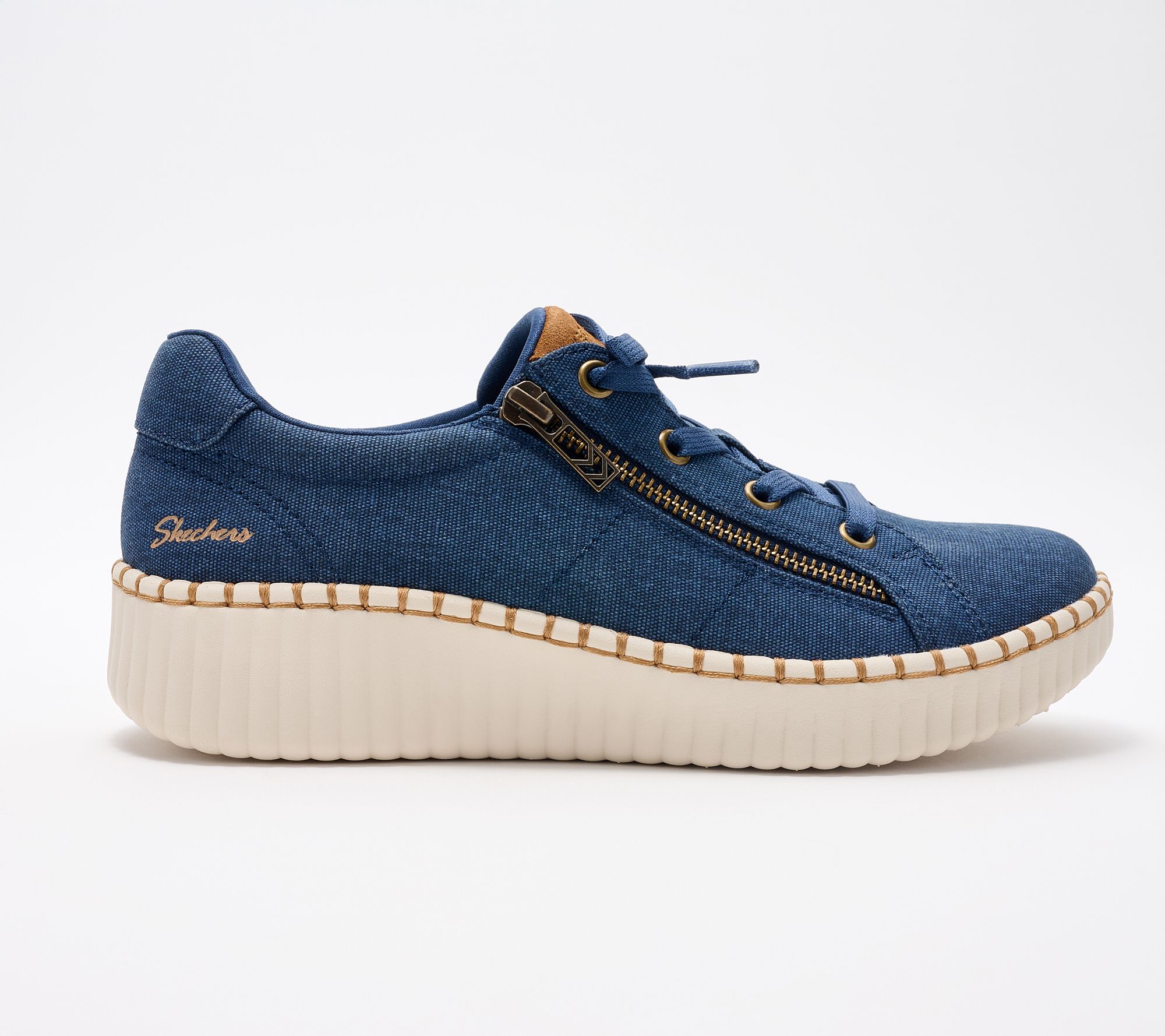 Easy mornings and casual plans are a breeze with these canvas sneakers, finished with decorative laces and a handy side zipper for quick changes. The jute-trimmed midsole adds a casual touch, while the cushioned Memory Foam footbed keeps every step comfortable. From Skechers.