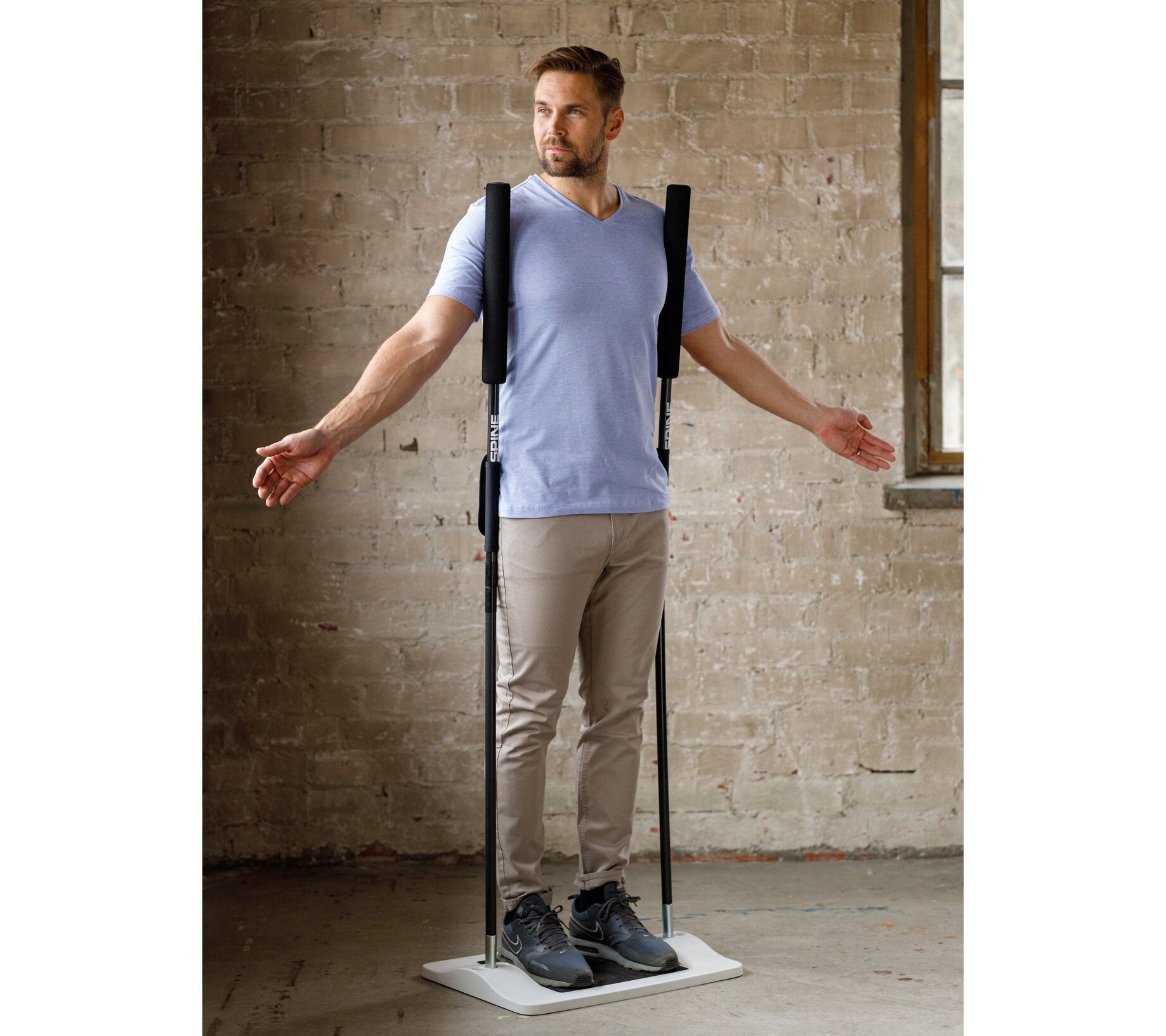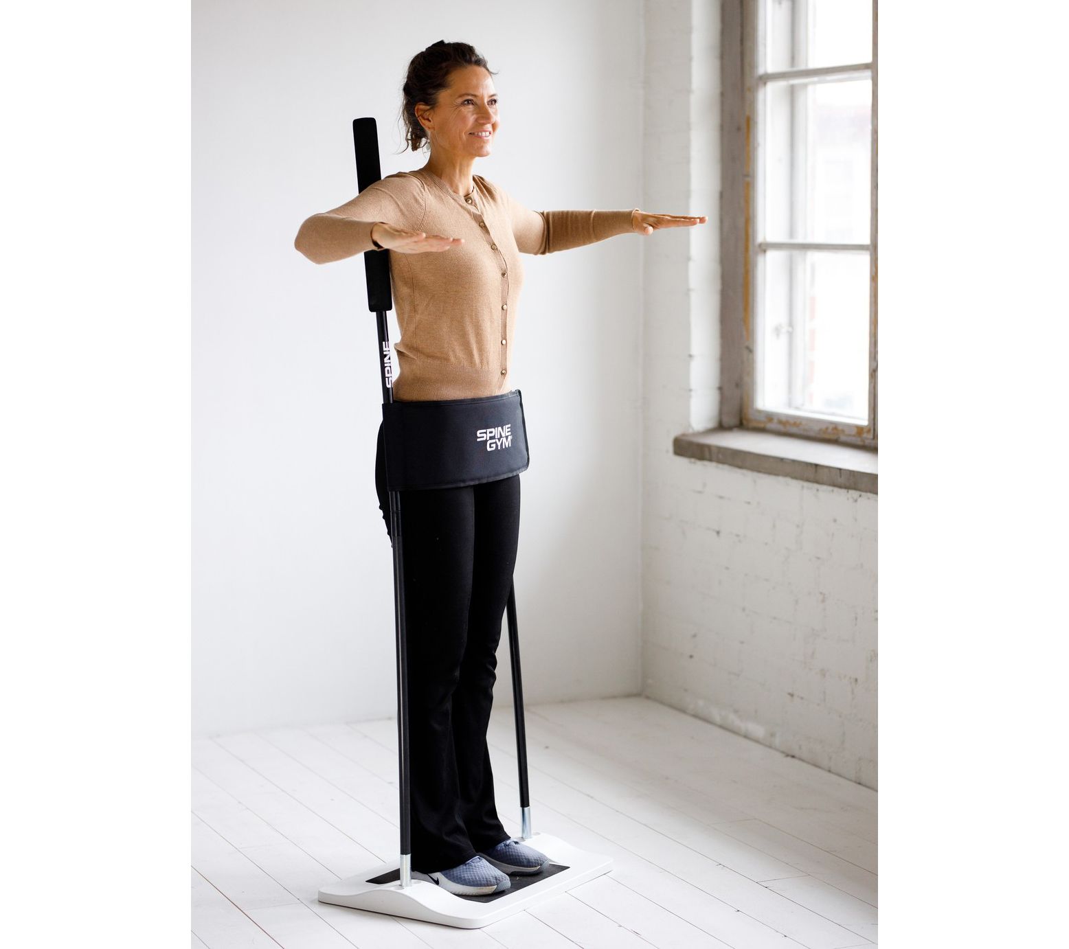 So hard core! SpineGym Core Exerciser is an innovative vertical workout tool that is designed to strengthen and tone the abdominal and back stabilizer muscles. Exercises are done in an upright position, and the unit assembles in less than two minutes with no tools needed. It's easy and can be done anywhere. Now what's your excuse? From SpineGym.