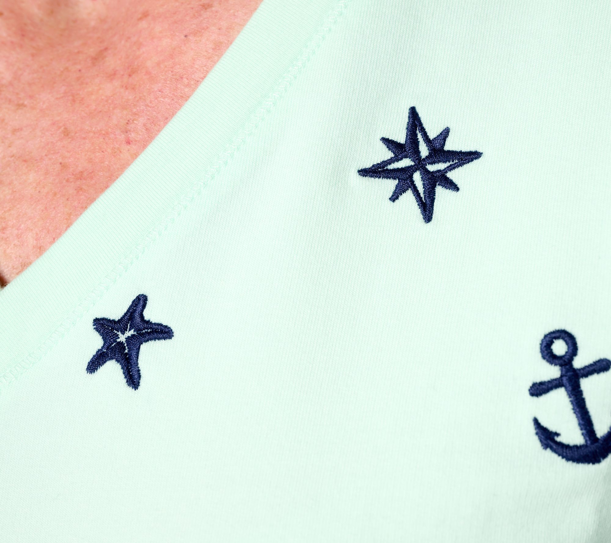 Come sail away! Sport Savvy's embroidered V-neck sweatshirt puts us in a nautical mood, featuring playful touches of seafaring symbols that dot the landscape of this French terry find. We're on board! From Sport Savvy.