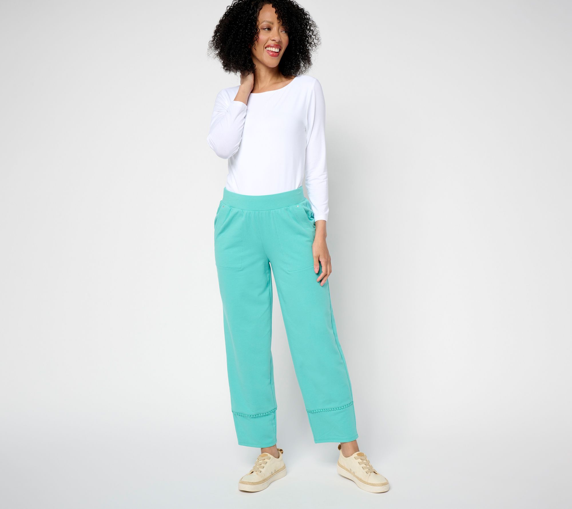"As Is" Sport Savvy Petite French Terry Ankle Pants w/ Pom Trim