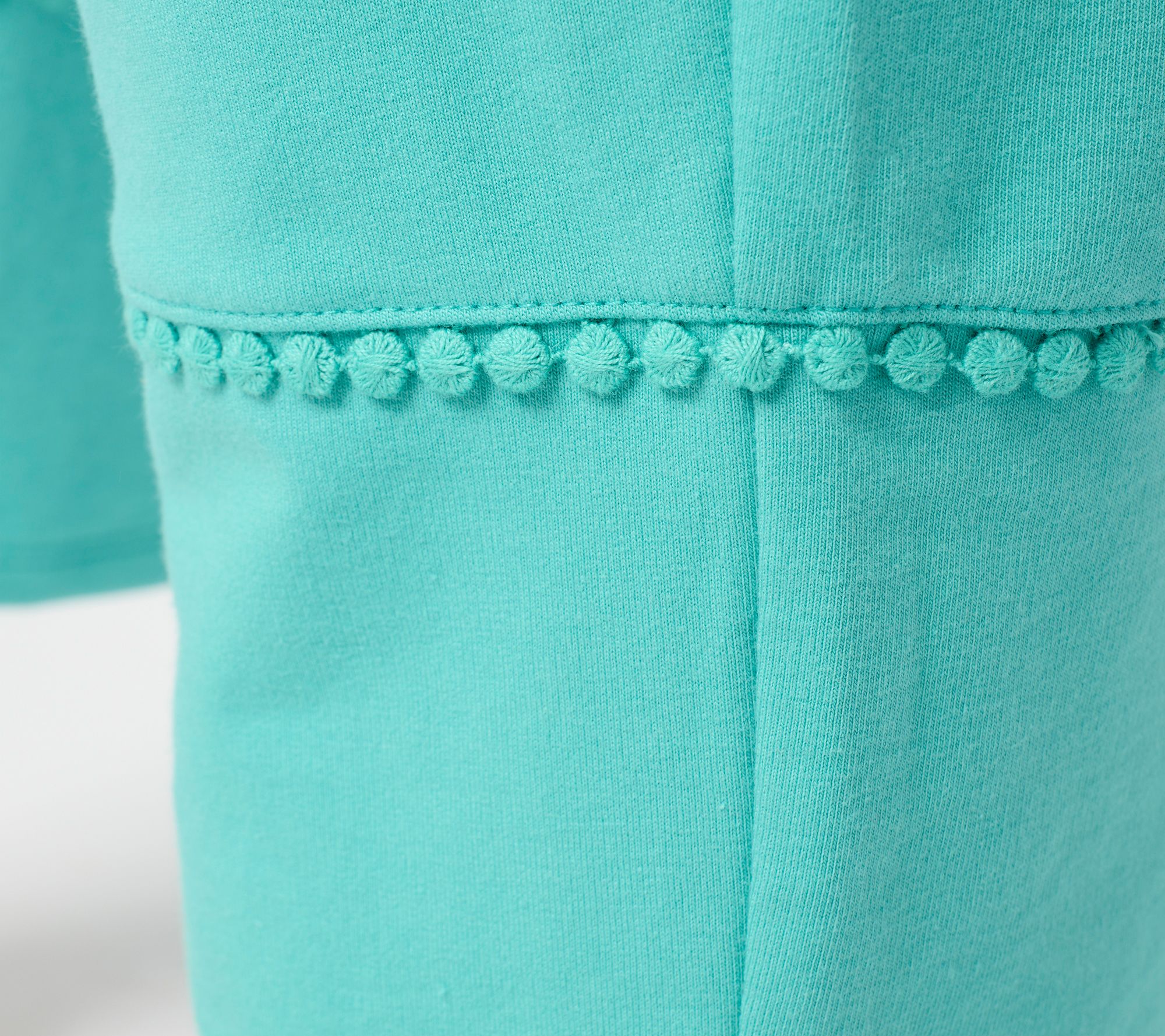 Three cheers for ankle pants with pom-pom trim! The French terry style lets your playful side shine while staying comfy and cozy enough for porch naps and cool outdoor evenings. From Sport Savvy.