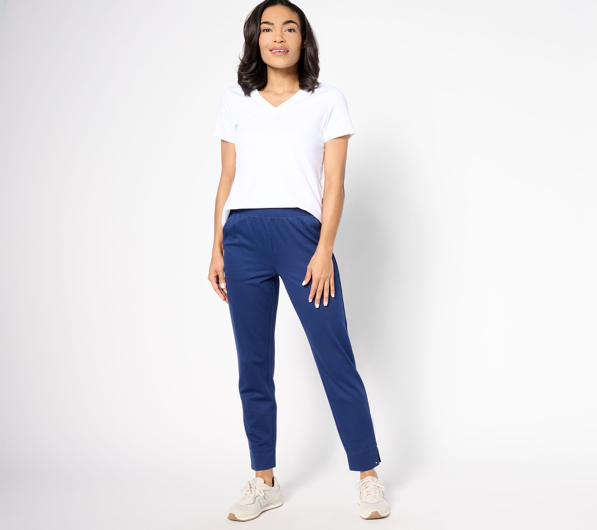Show your sporty side with a pair of tapered pants you can wear with a sweatshirt and sneakers. Side slits and grommets at the hem are snazzy details that elevate the look. From Sport Savvy.