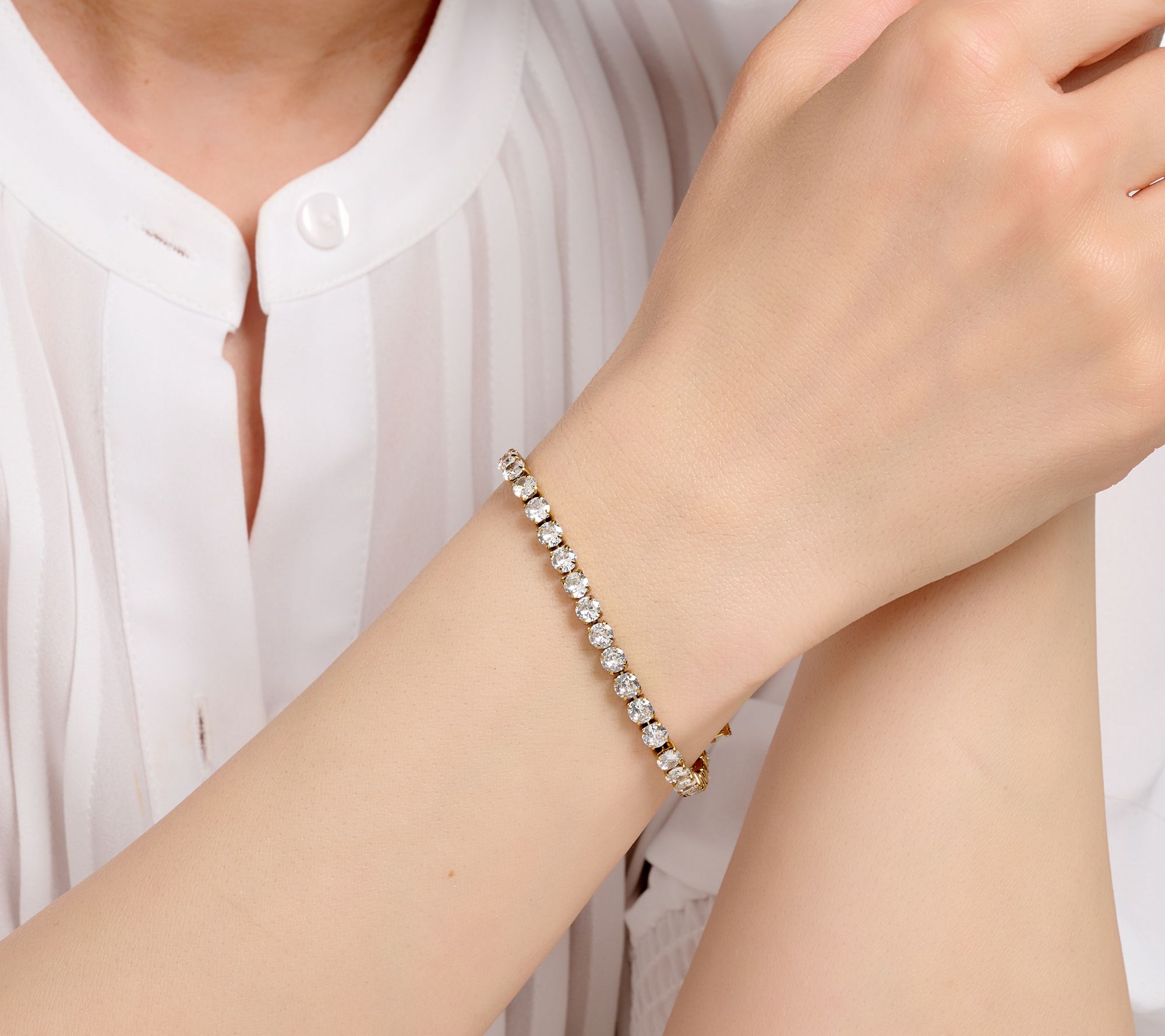 • Includes tennis bracelet, stud earrings, and hoop earrings with dangle