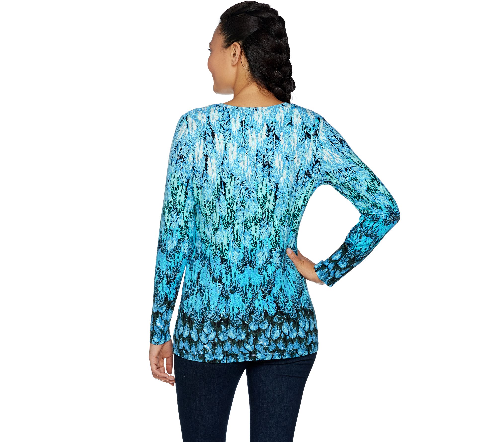 "As Is" Studio by Denim & Co. Feather Print Long Sleeve V-Neck Top