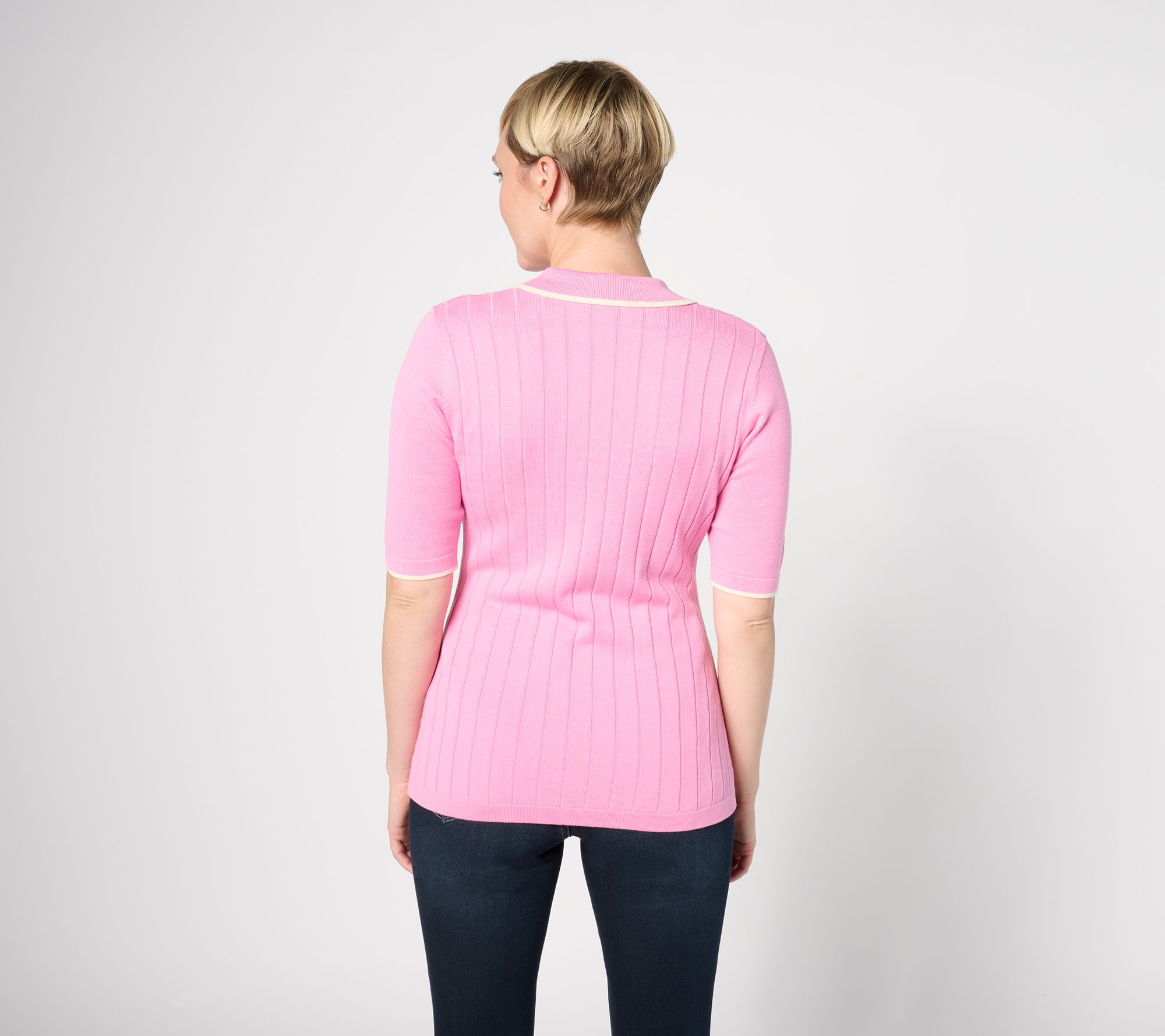 "As Is" Studio Park x Alberti Popaj Women's Color Pop Knit Polo Sweater