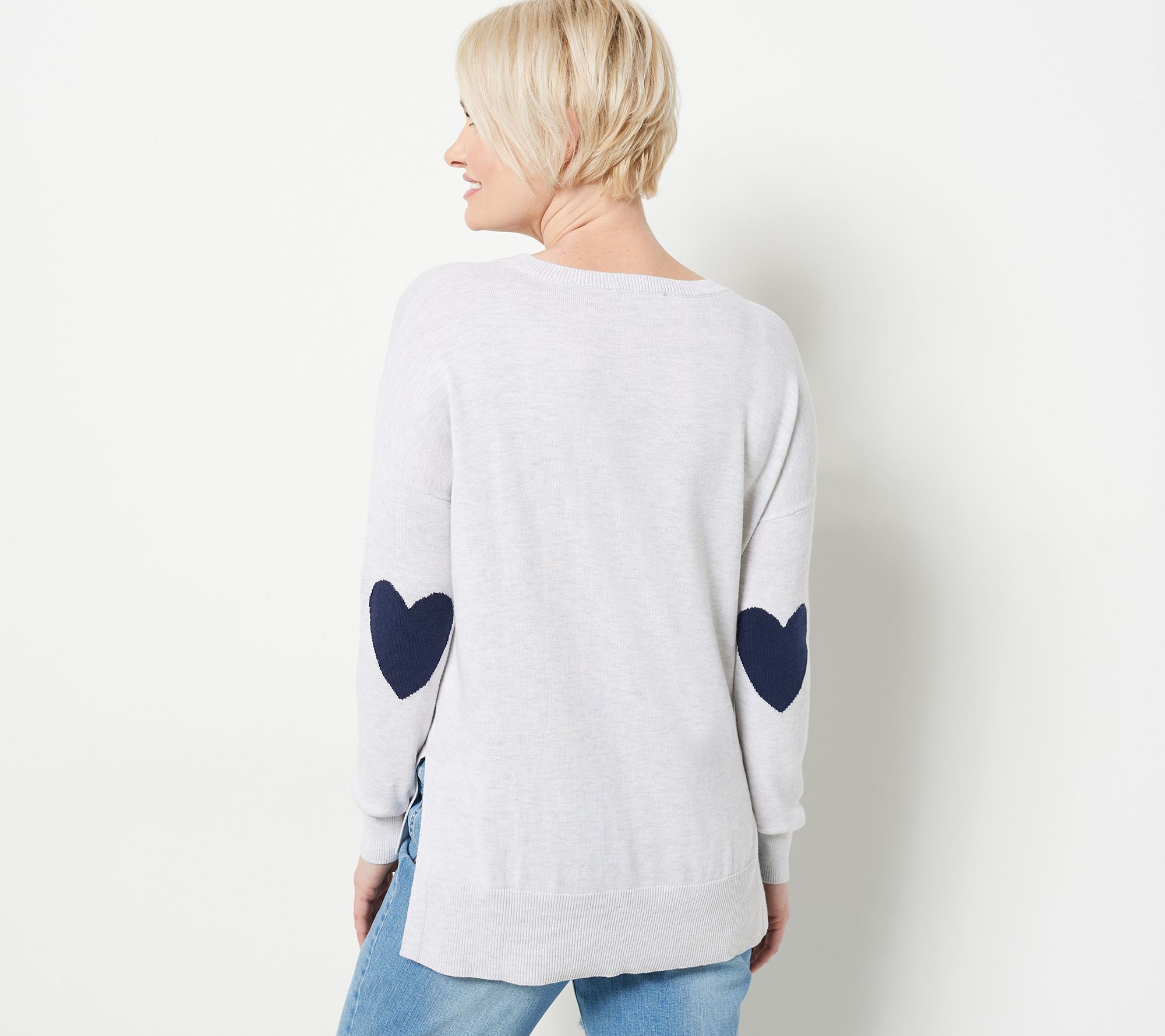 Pump some love into the world with this oh-so-cozy girlfriend sweater. The heart-shaped elbow patches (soo cute) invite the charming vibes of sunny season to break up the grayness of wintertime. From Studio Park.
