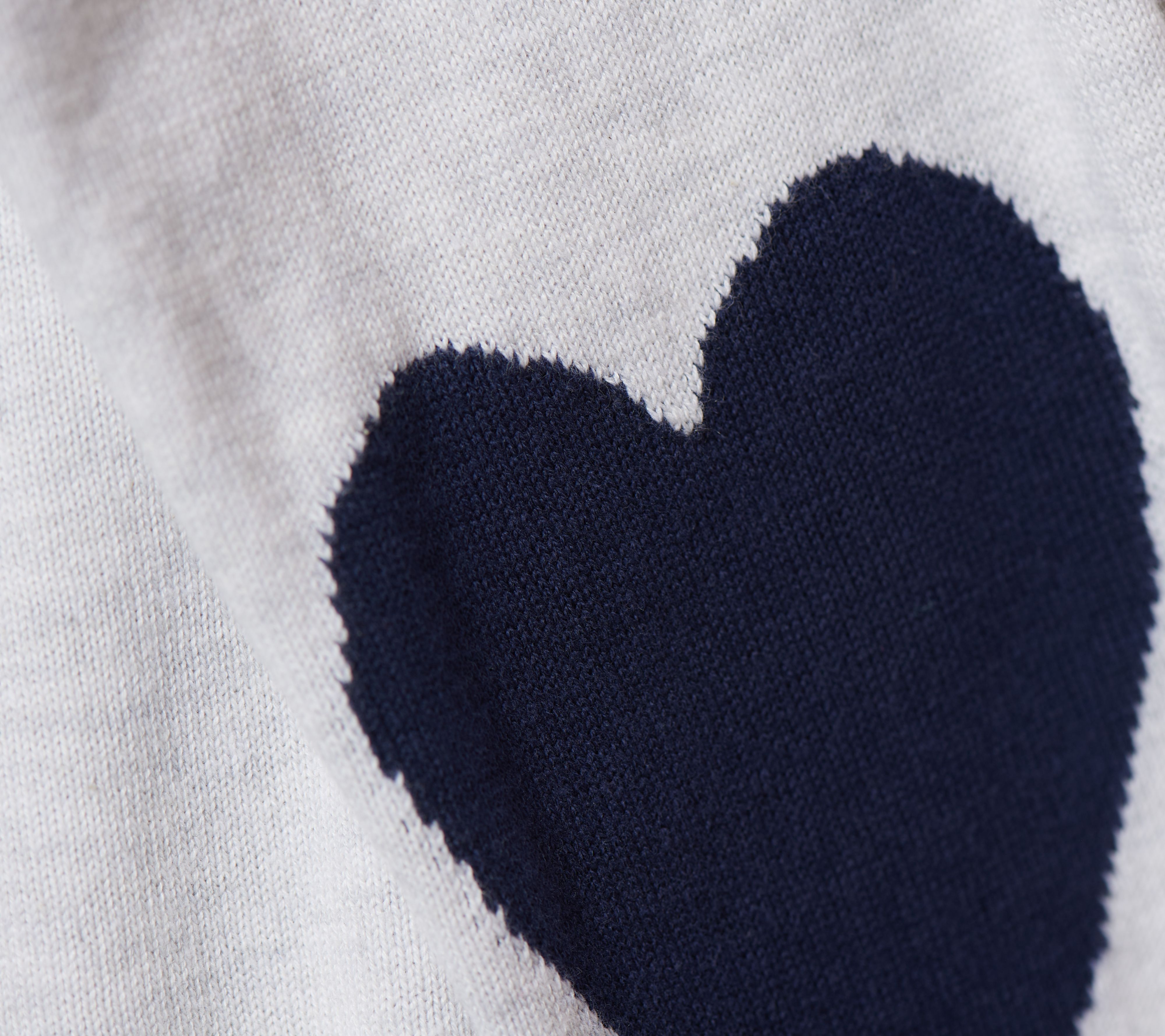 • Features: 1x1 rib neckband, straight armhole, heart-shaped elbow patch, high-low hem, 1x1 rib cuff and bottom band