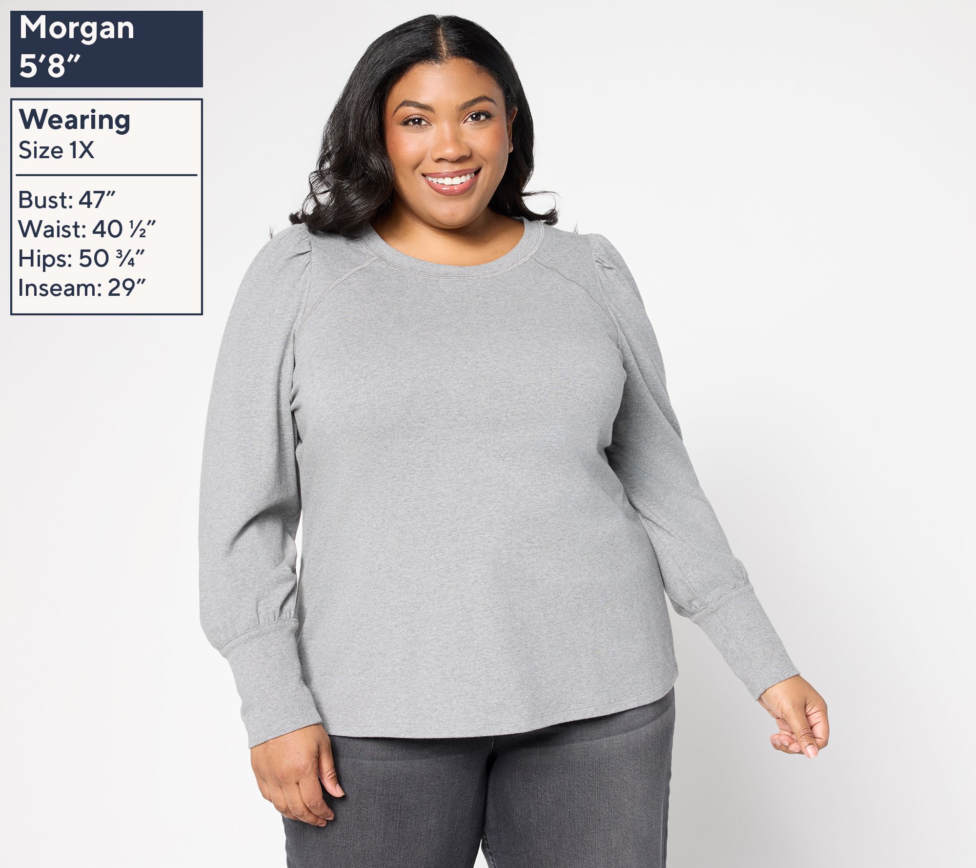 Baseball games, park walks, or weekend hangouts feel instantly more fun with this puff-sleeve baseball tee. The cotton-rich knit is soft and easy to move in, while playful sleeves, cap shirring, and raglan seams bring fresh character to everyday looks -- whether you dress it up with slacks or keep it casual with jeans. From Studio Park™ x Amy Stran.