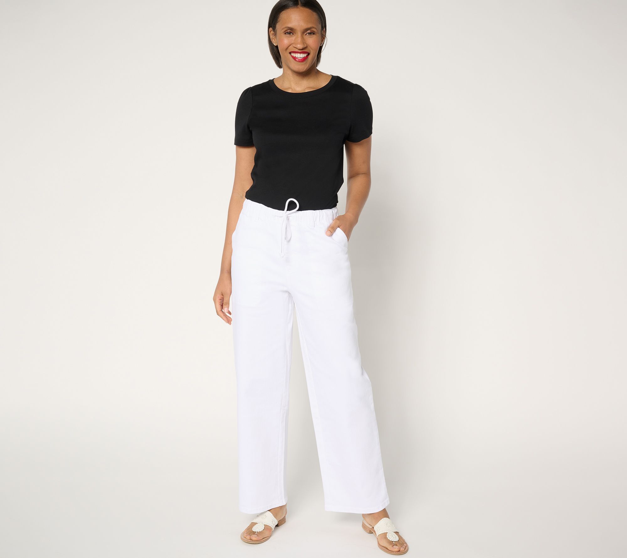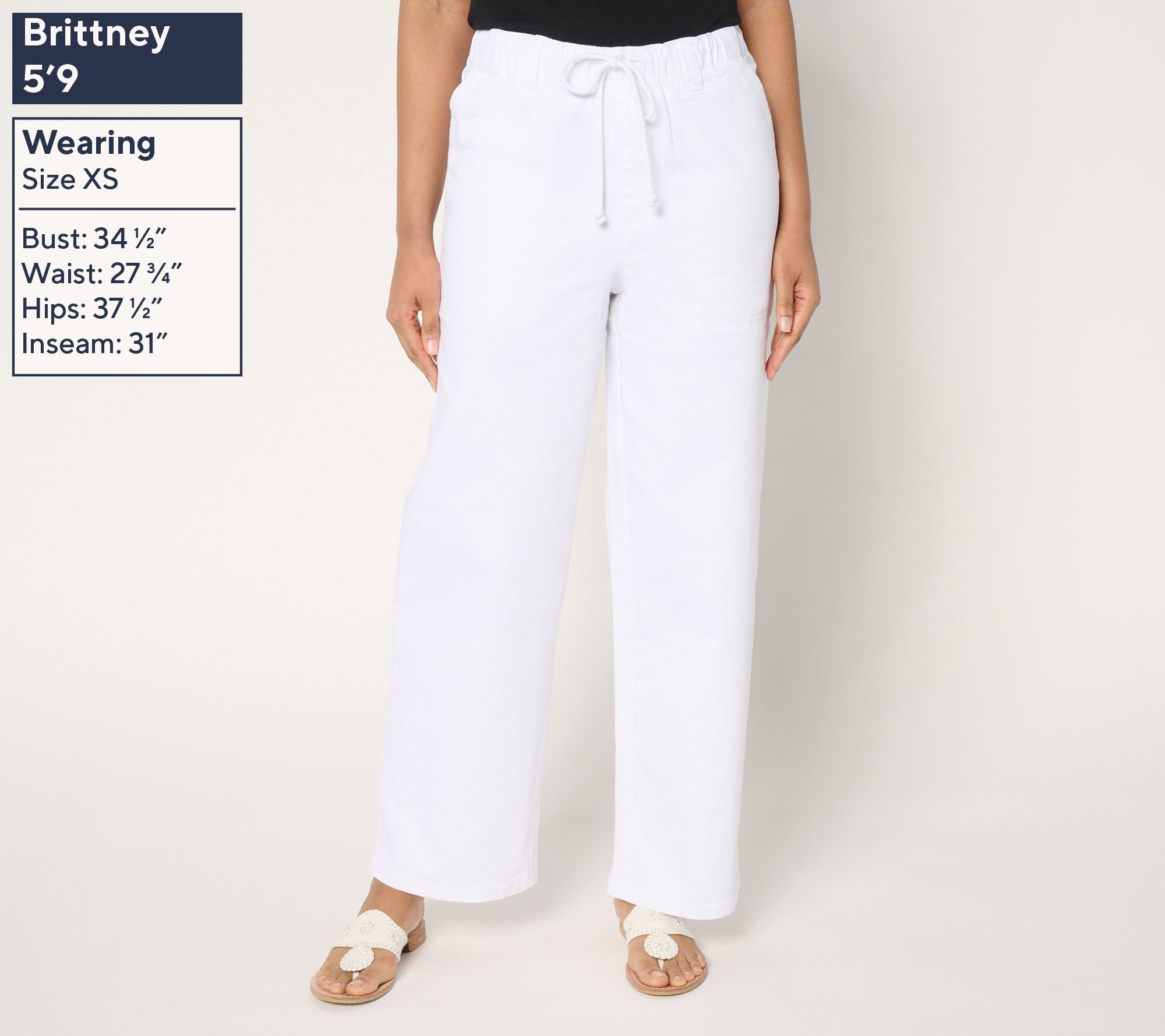 Have your fashion moment -- and your comfort, too -- in these drawcord white jeans. Crafted with a fit that's just relaxed enough, an endlessly versatile straight leg, and Amy's signature stylish vibe, they're here for travel to chic destinations, casual Fridays, and everything in between. From Studio ParkTM x Amy Stran.