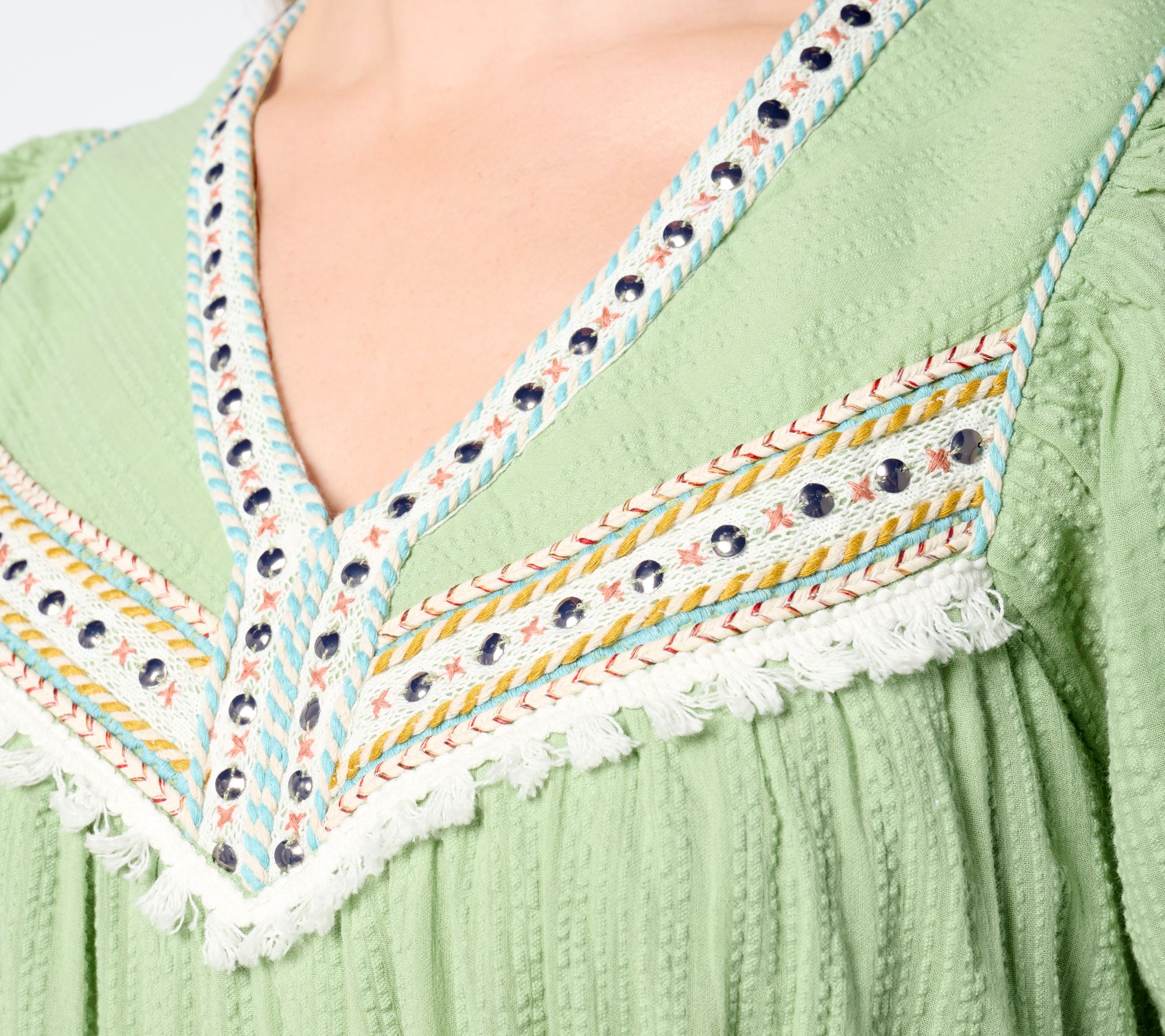 Like an impromptu invite to dine al fresco or a weekend stroll along the riverwalk, this embellished cotton midi feels breezy and just right for summer. (We also love it for mid-day celebrations -- or even a beachy wedding!) When the sun sets or seasons change, layer on a jean jacket or cozy cardi to keep a good thing going. From Studio ParkTM x Amy Stran.