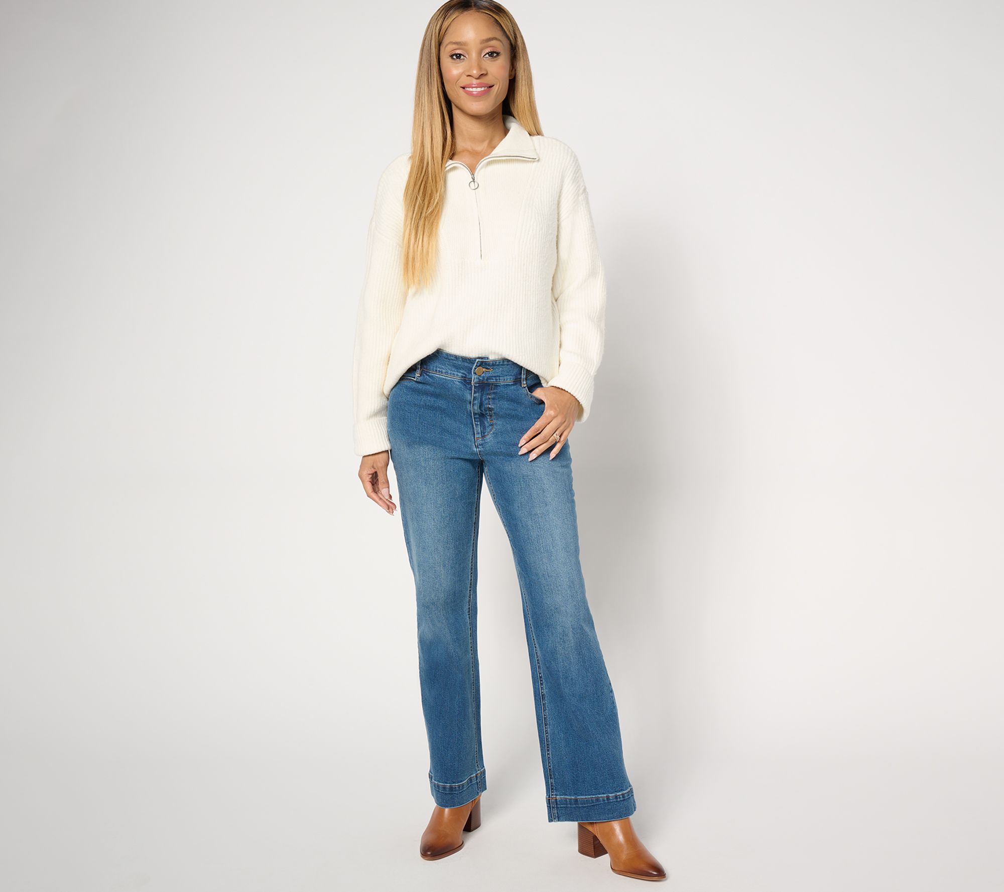 To jean or not to jean? It's never a question with this boot-cut denim -- a flattering, instant classic that plays well with sweaters and boots, tees and sneakers, blouses and flats -- in your closet. (Because Amy knows her denim!) From Studio ParkTM x Amy Stran.
