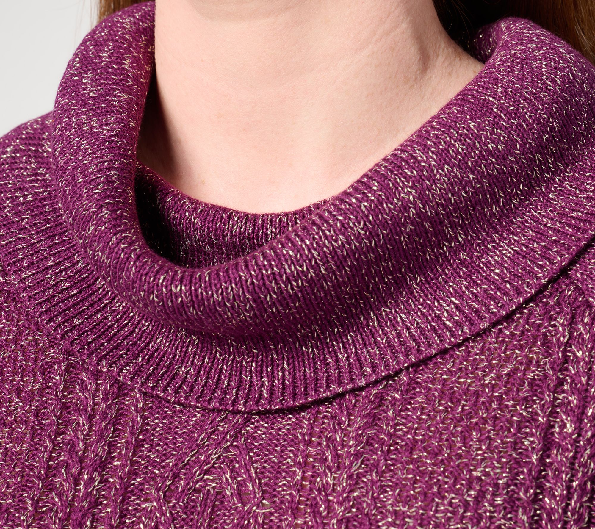 "As Is" Studio Park x Jane Treacy Cowl Neck Cable Sweater w/Lurex