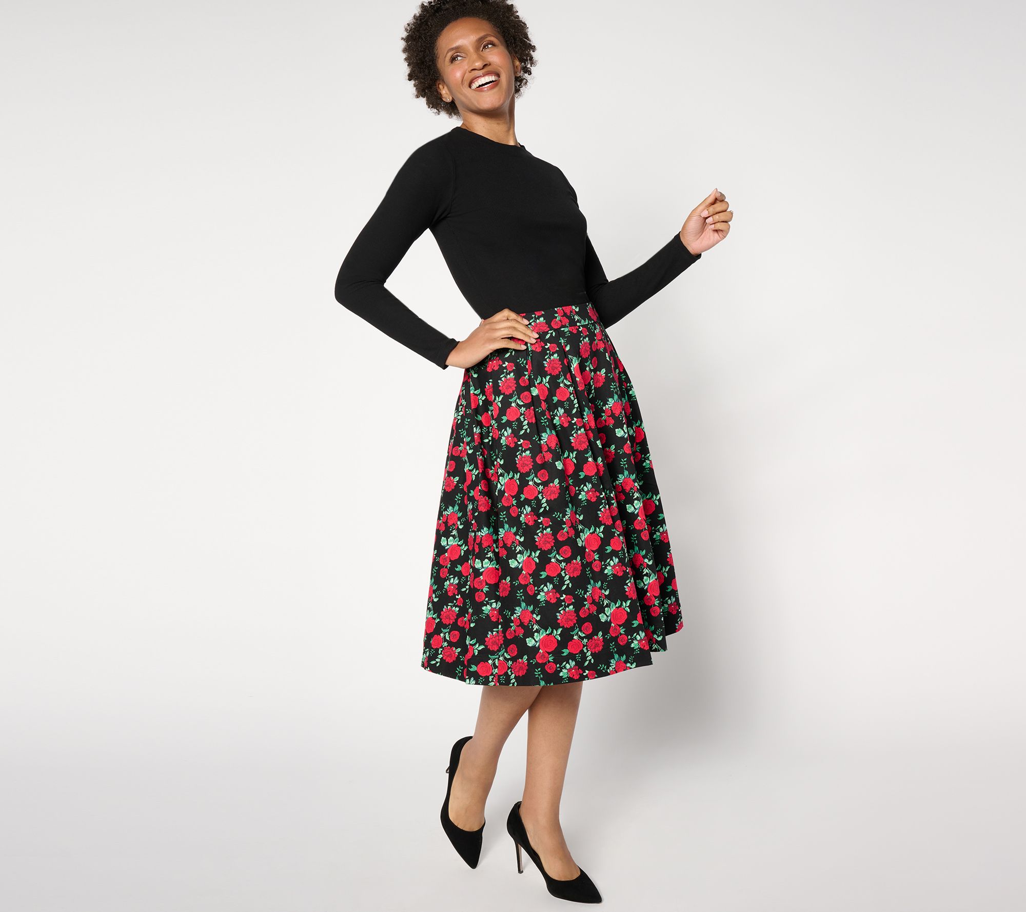 We know some of Jane Treacy's fave wardrobe pieces are graceful and feminine (just like her!) -- and she's knocked it out of the park with this versatile version of a ball skirt! Leave the slacks behind for a sec and slip into this relaxed-fit printed piece that features plenty of inverted box pleating for whirling and twirling. You'll wow the crowd with its casual elegance by simply tucking in a black top and adding a pair of pumps and a cute clutch. Or slip into a cropped denim jacket and some ballet flats for coffee dates or vacay sightseeing. From Studio Park® x Jane Treacy.