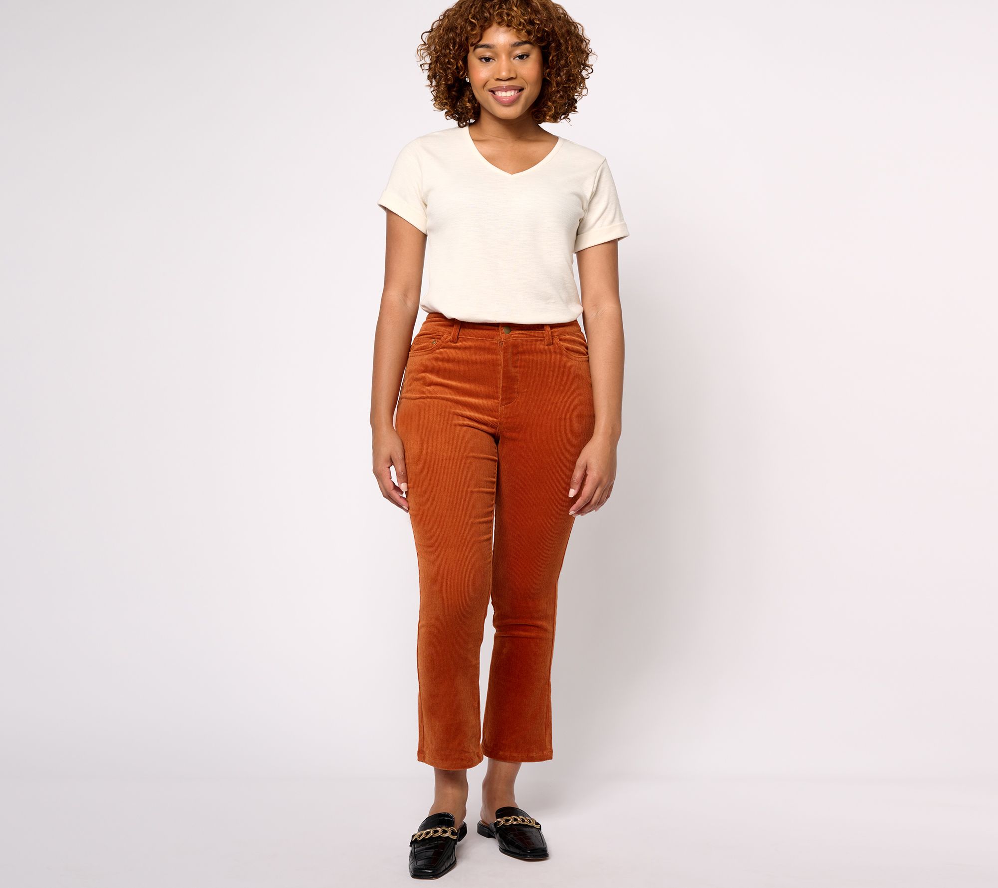 What's missing from your fall closet? Leah knows. It might be this super-cute pair of cords! Never heavy or thick, these comfy corduroy pants instantly bring on all the fall feels. (Plus, their boot-friendly flare at the ankle is perf for all your fave footwear.) From Studio ParkTM.