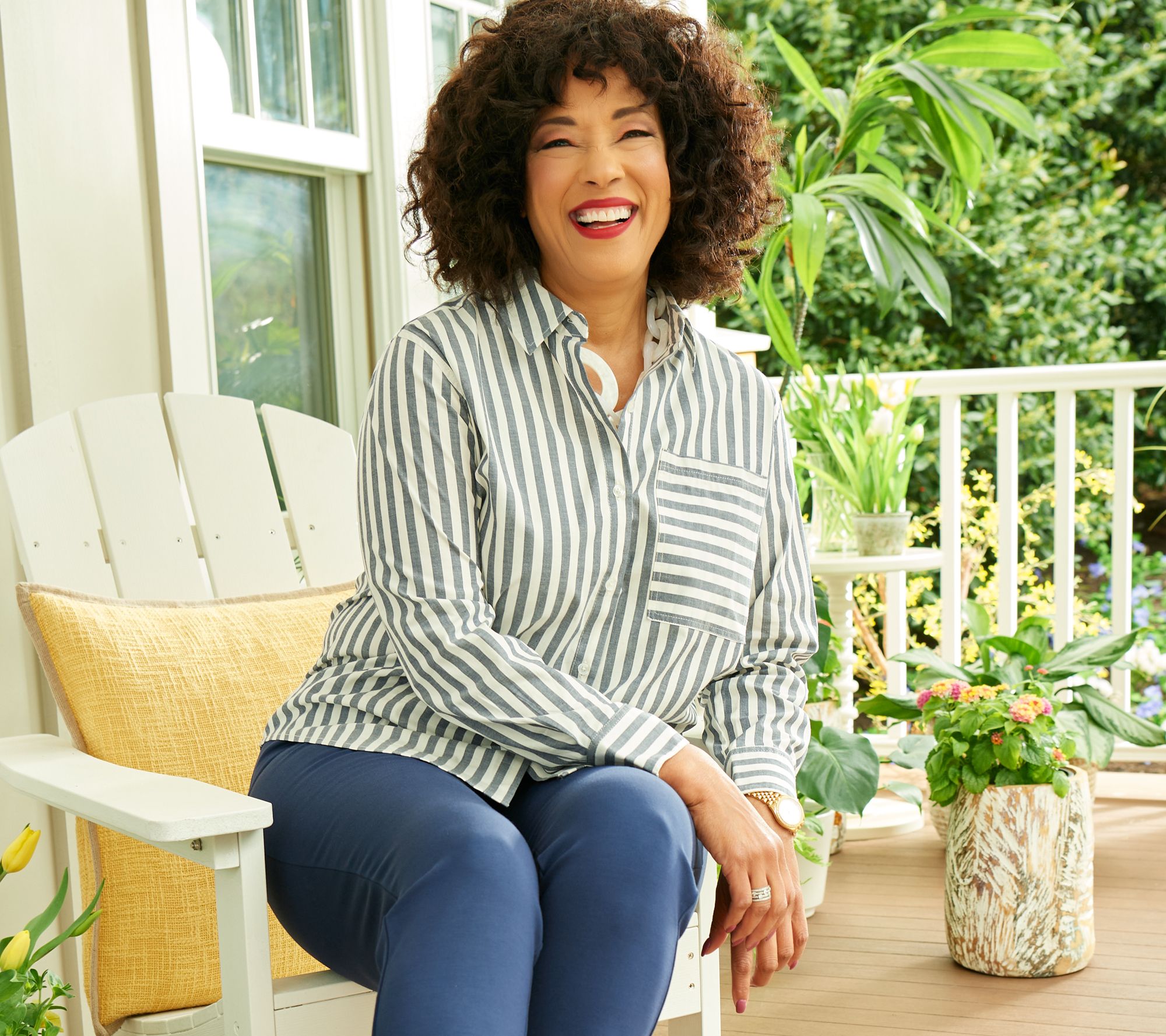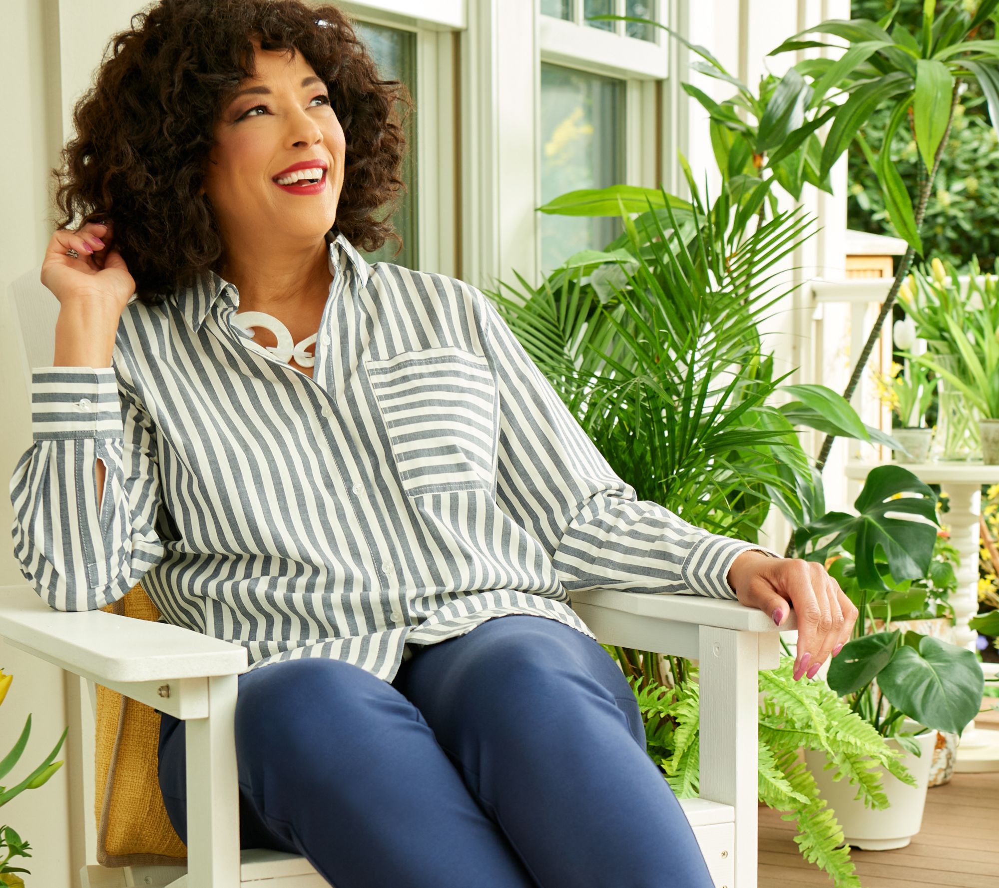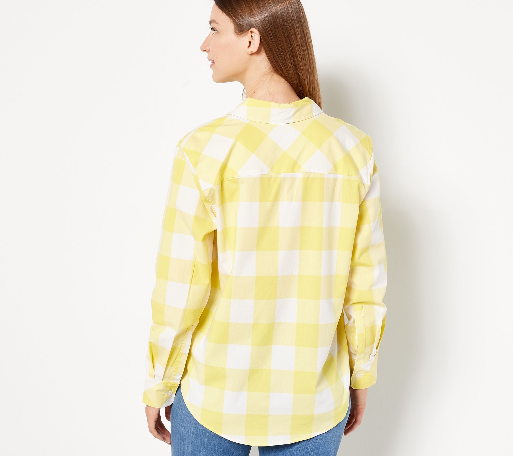 Go from poised and polished to prepped for fun in this button-front shirt with plenty of comfy stretch. Pair it with pressed slacks at the office and then unbuttoned over a tank for dinner and drinks after work! From Studio Park.