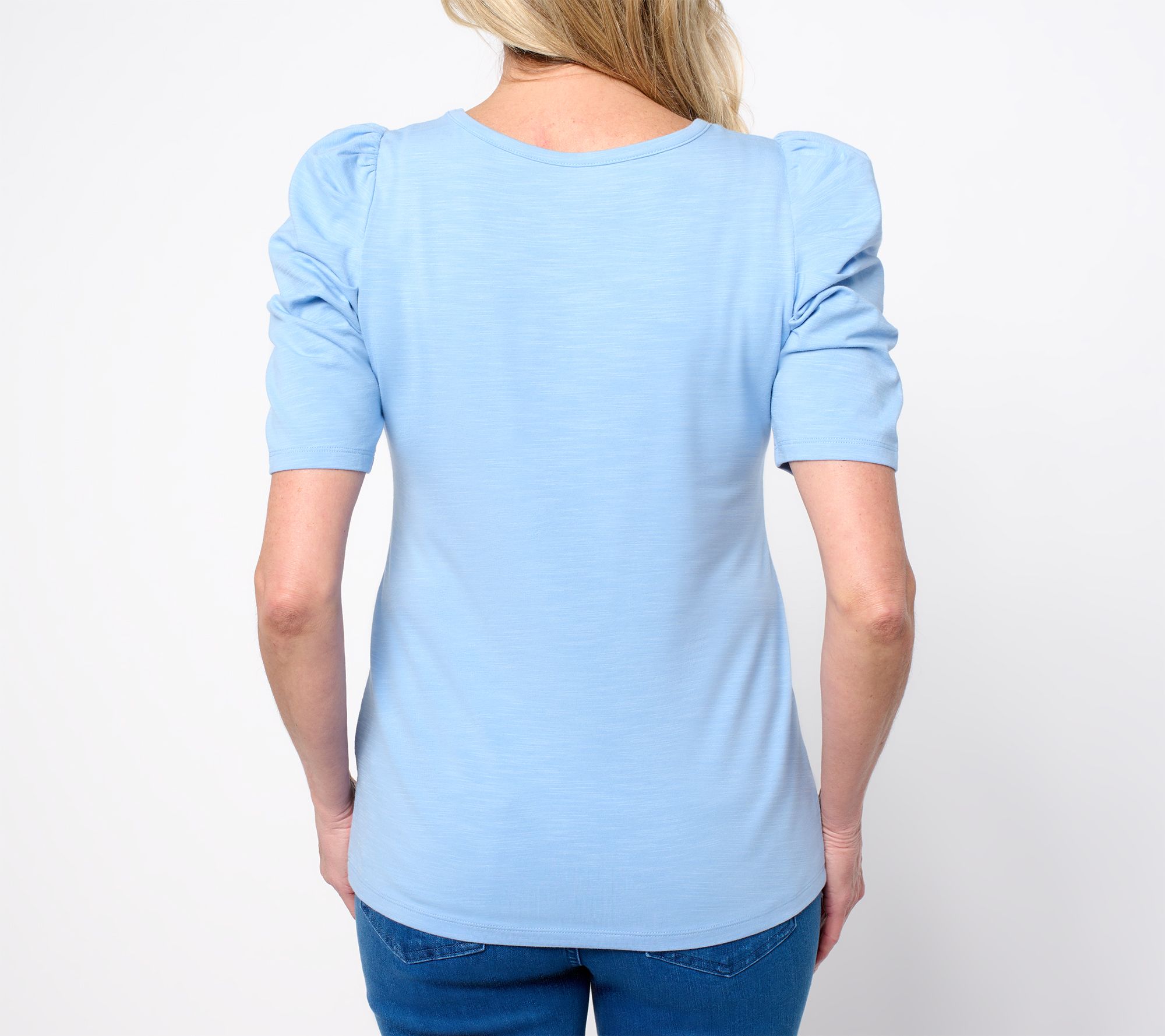 Slip into a stylish groove with this Studio Park x Rosina Grosso ruched sleeve knit top. The fitted piece, with delightful shirring and pleat detail on the sleeves, showcases your chic personality while feeling luxuriously soft against your skin. From Studio ParkTM x Rosina Grosso.