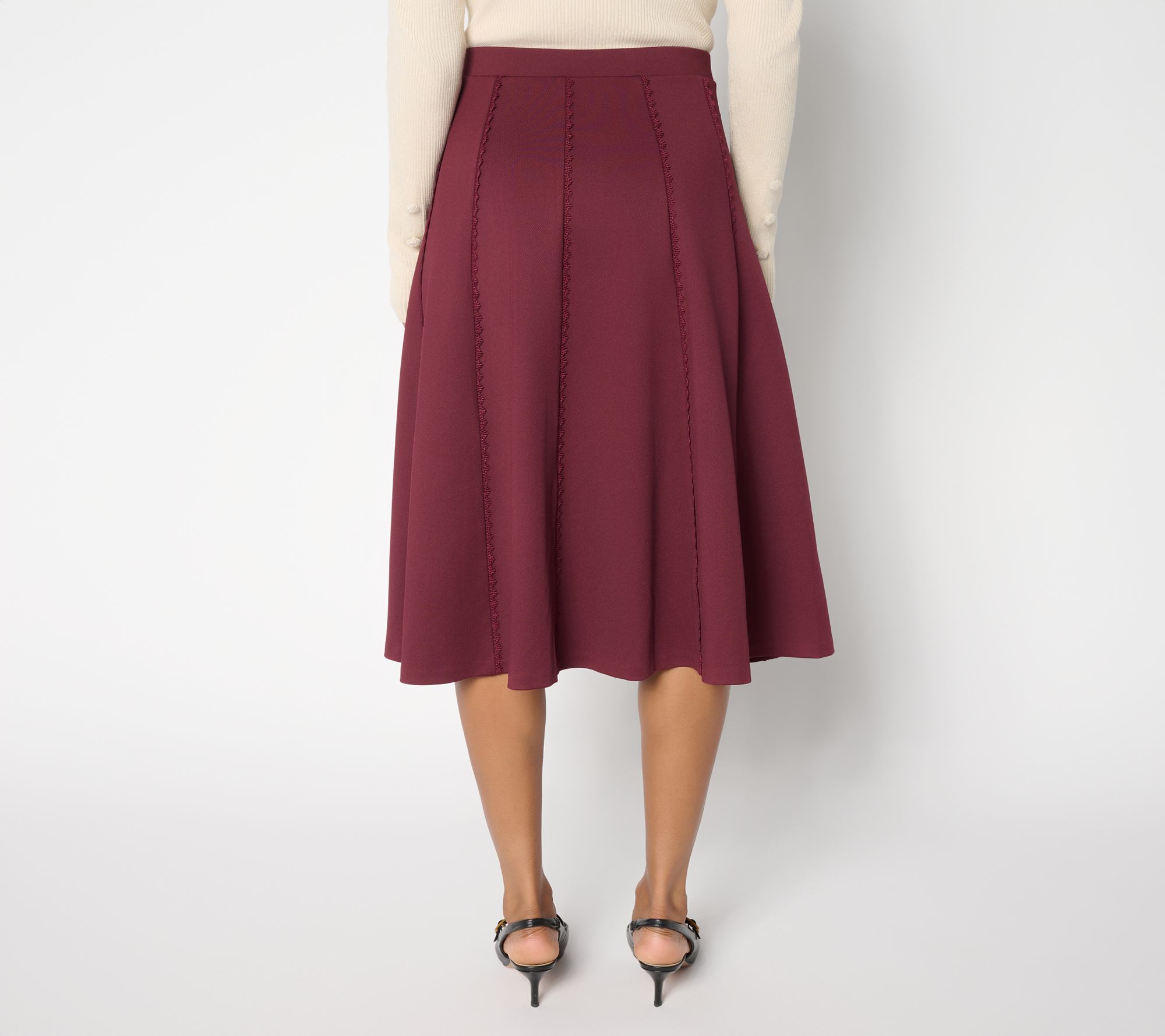 Have your midi fashion moment -- with extra sweetness! Rick-rack trim gives this pull-on skirt that something extra that pops for party looks, photo ops, and even your professional life. Style it with a soft sweater, a crisp button-front, or a silky blouse. From Studio ParkTM x Sandra Bennett.