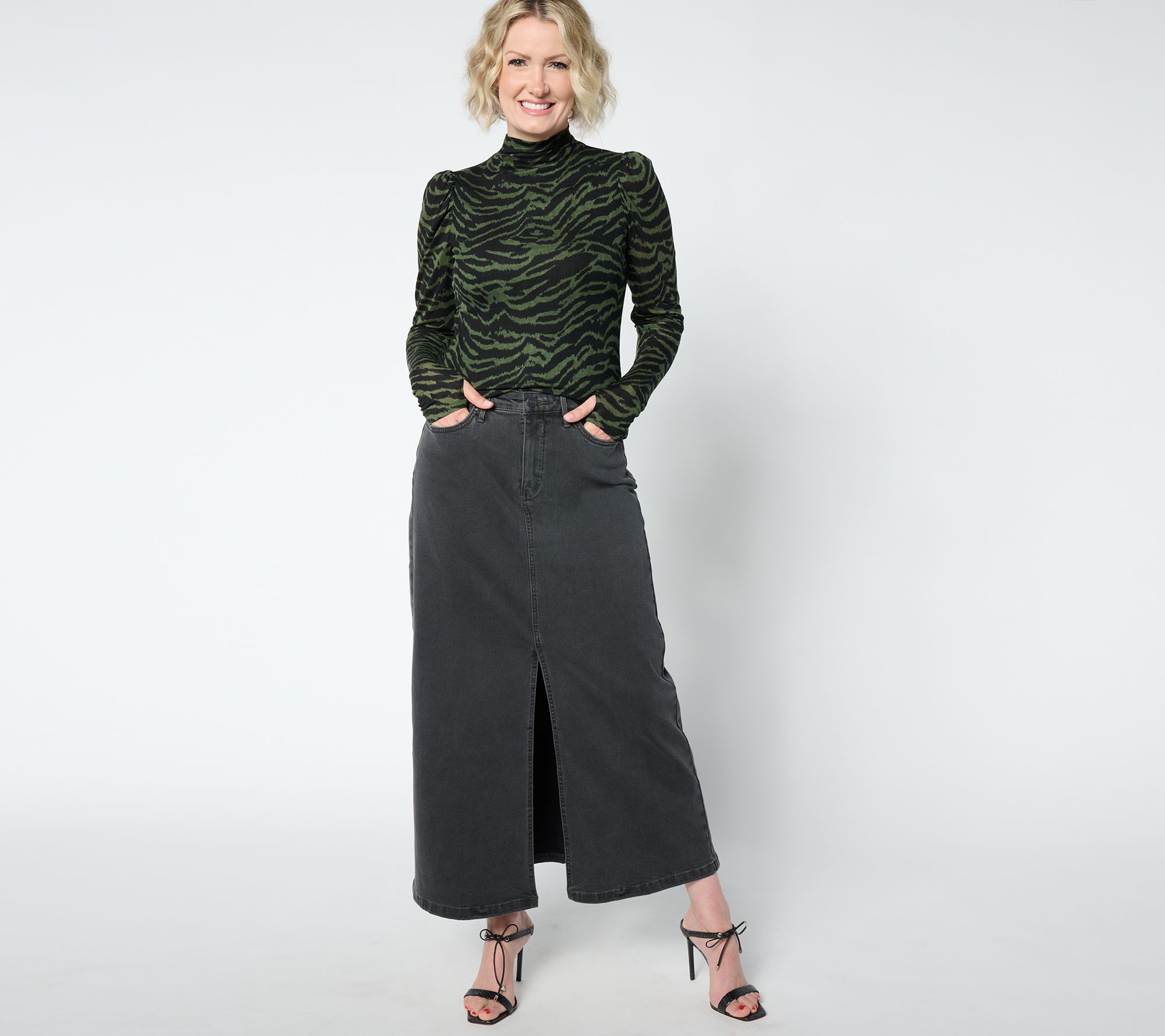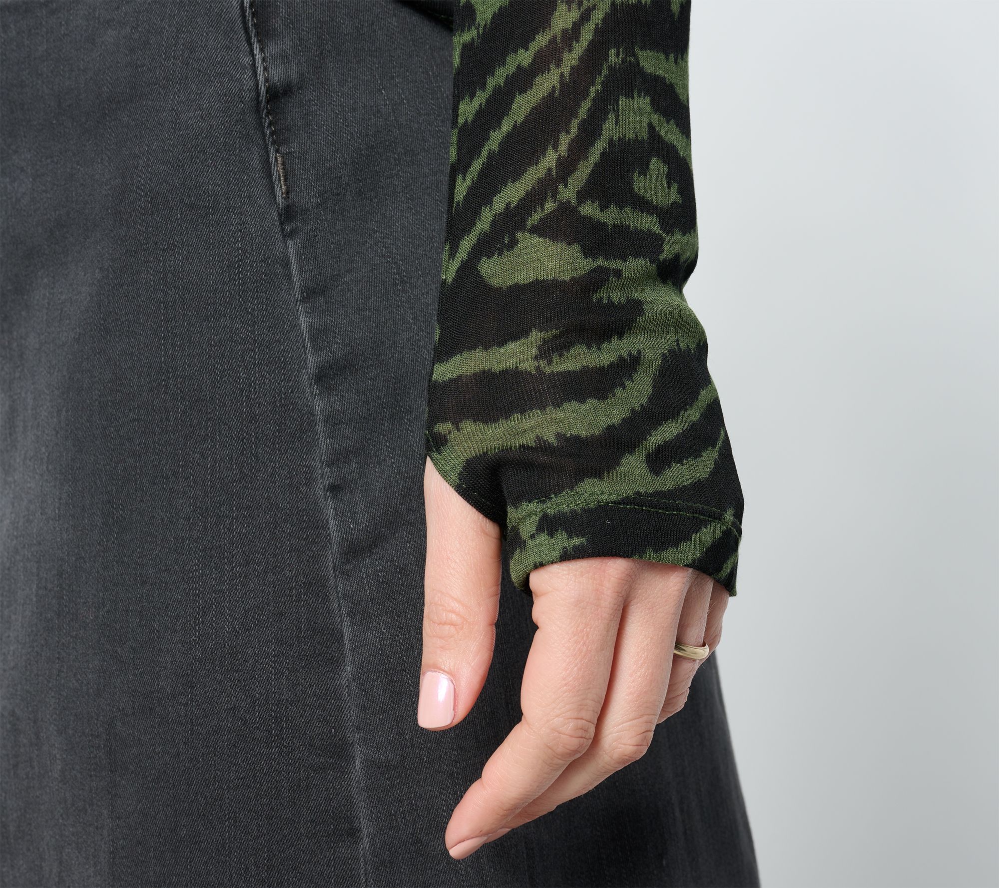Just what your wardrobe needs -- a versatile long-sleeve top you can wear solo or layered under a jacked or blazer. The cozy funnel neckline keeps you warm, while thumbholes at the cuffs are an edgy detail that brings a touch of fashionable functionality to this chic everyday style. From Studio ParkTM x Shawn Killinger.