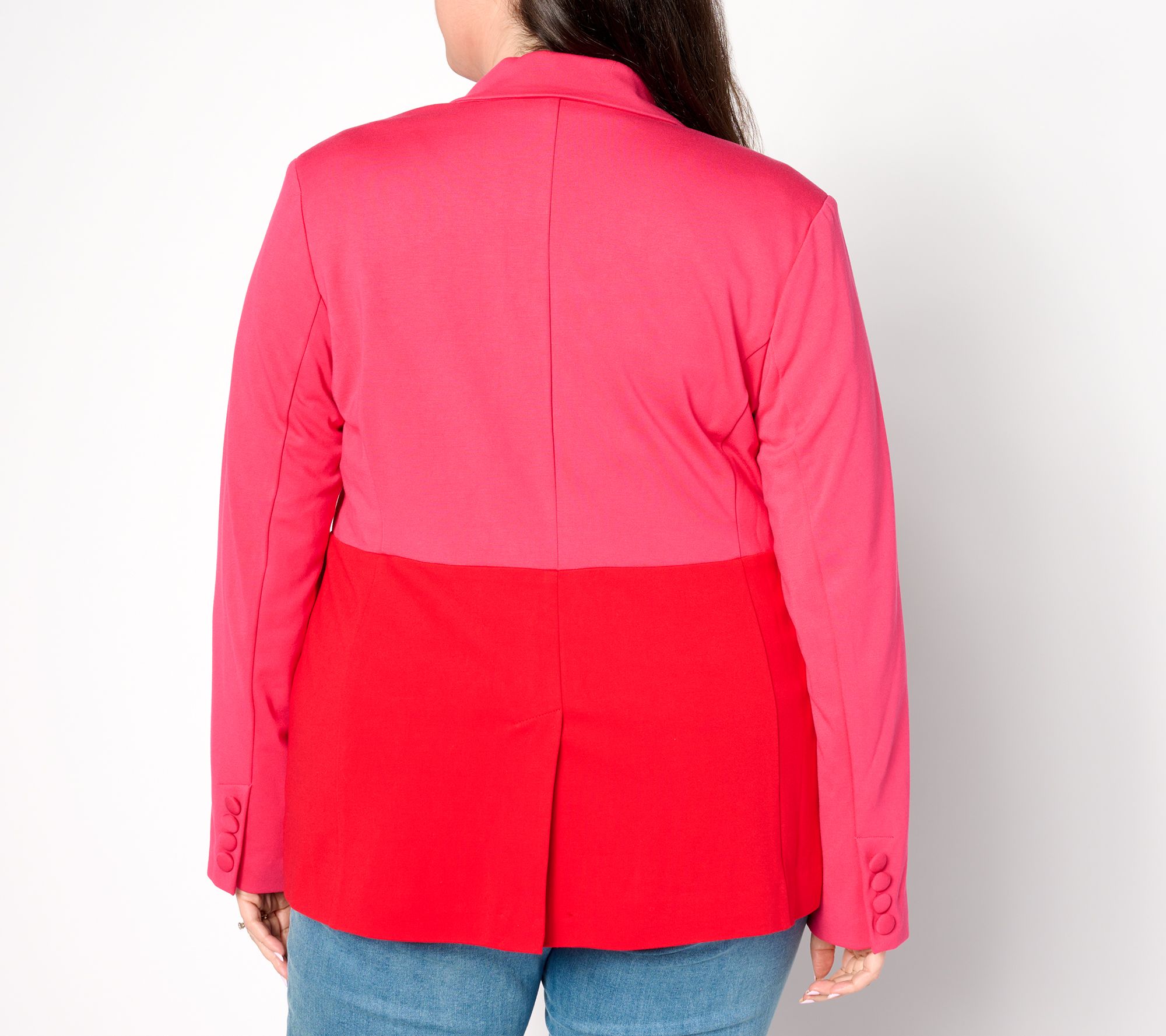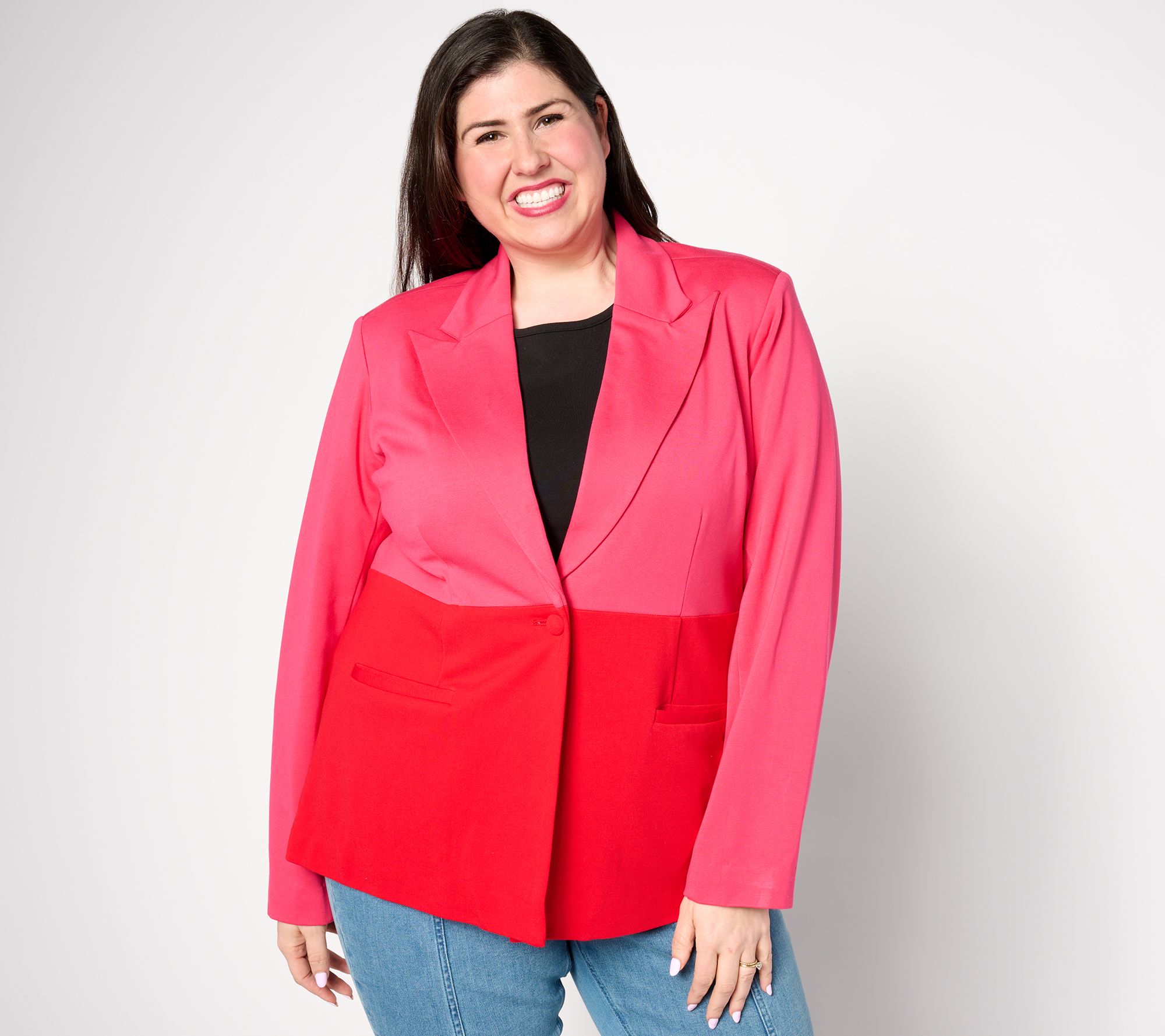 Have fun with fashion when you're wearing this whimsical colorblock blazer. The two-tone design stands out whether you pair it with a casual T-shirt and jeans or dress it up with a fitted frock and pumps. From Studio ParkTM x Shawn Killinger.