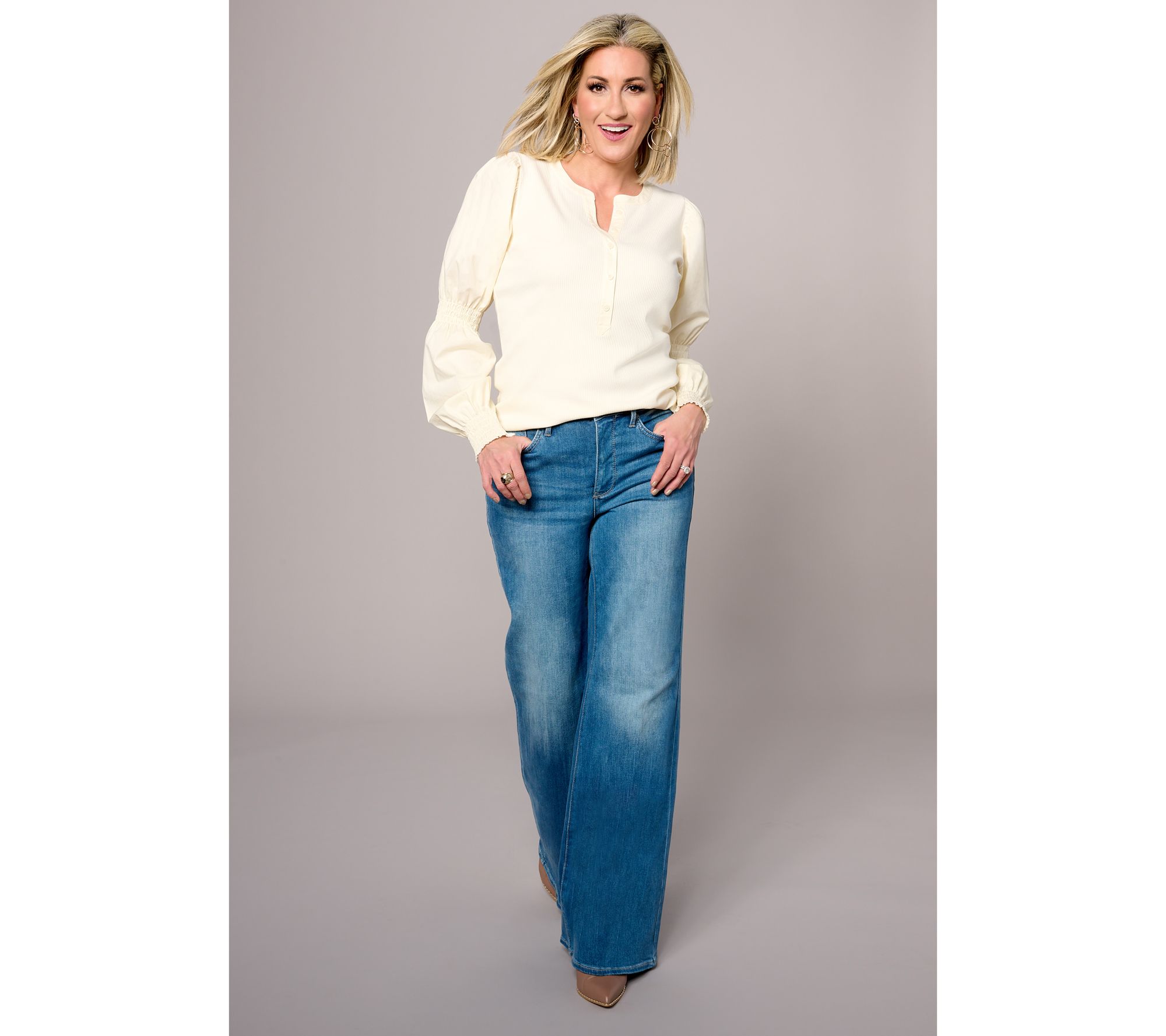 "As Is" Studio Park x Shawn Killinger Mixed Media Puff Slv Henley Top