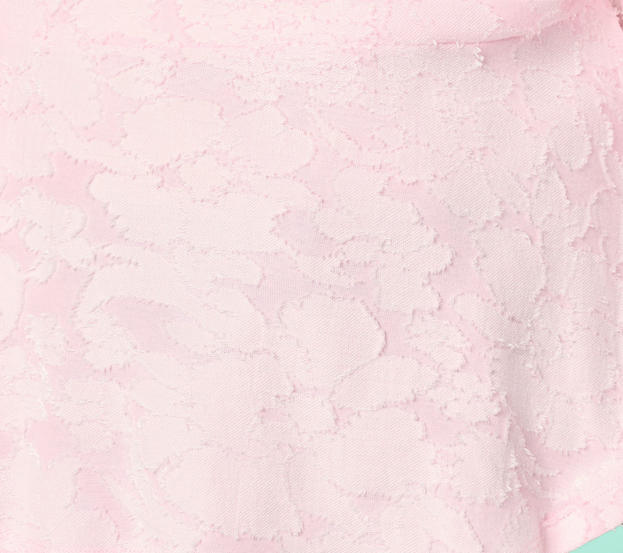 • Features: faux-wrap top layer sewn into side seam, shirring centered over sleeve cap, hook-and-eye closure inside of neckband at crossover, elastic back waist, long sleeves with elastic cuff
