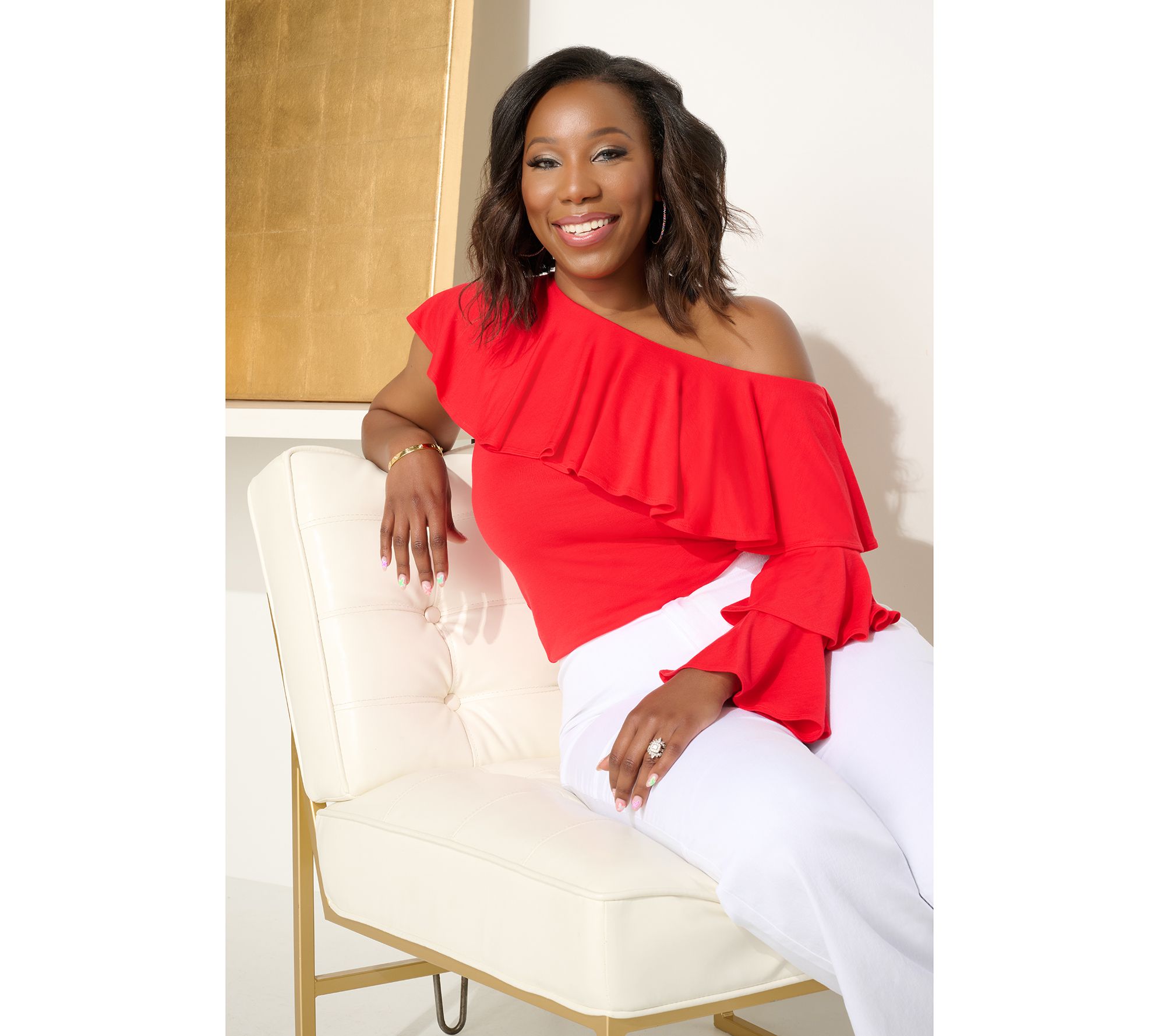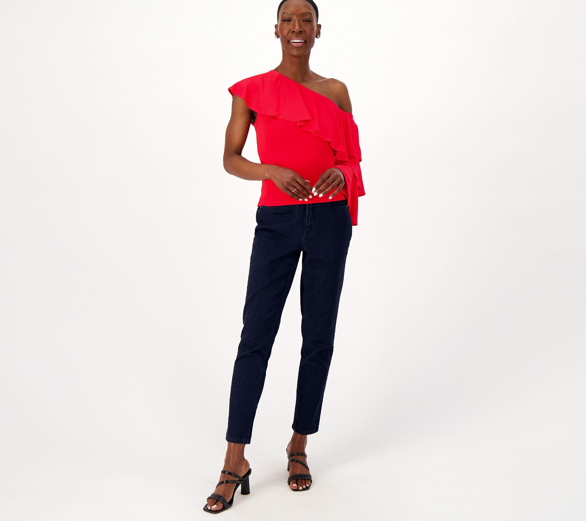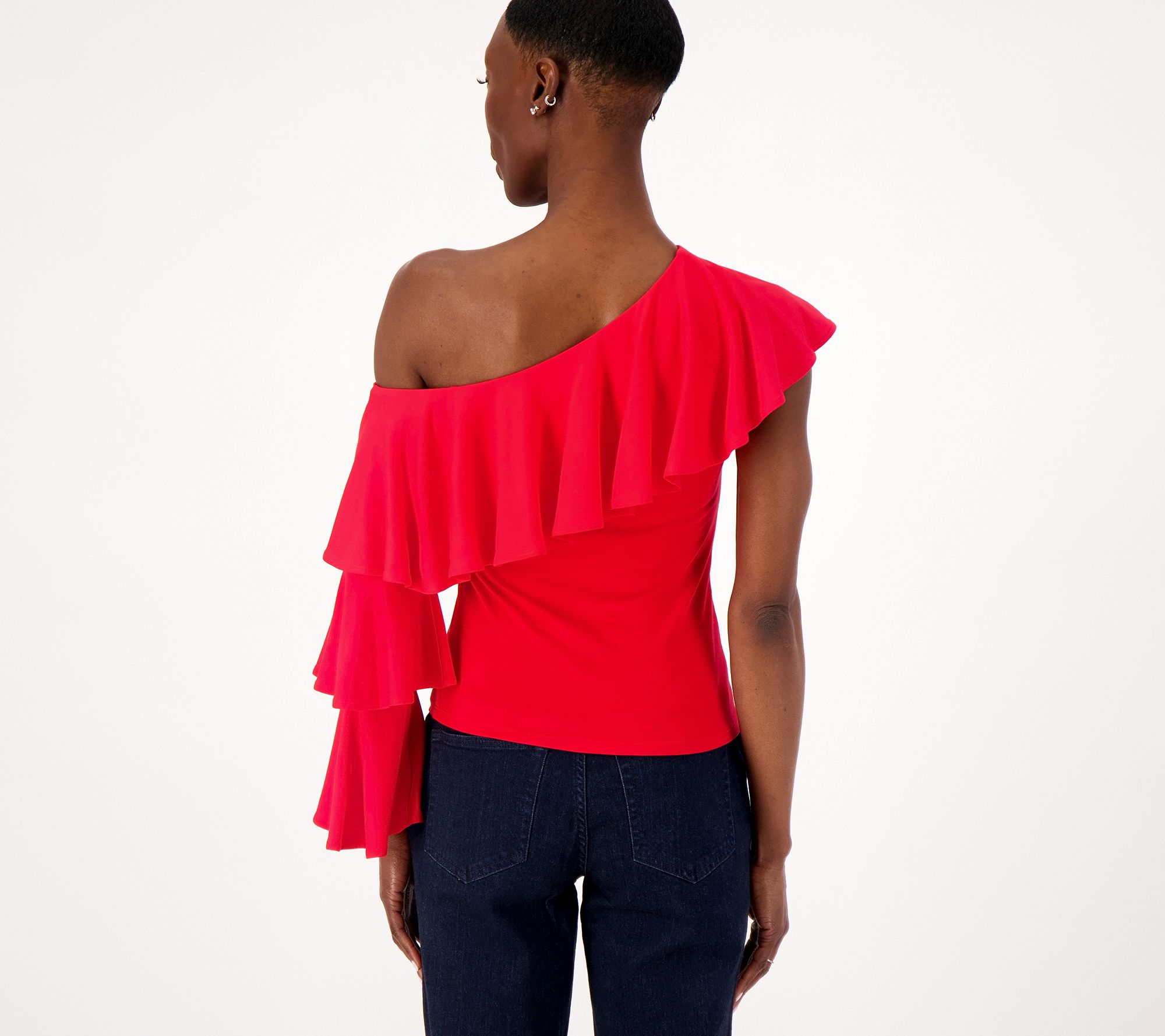 Shimmy into summer wearing this one-shoulder ruffled top. The layered sleeve gives glam vibes to this fun and fabulous style. From Studio ParkTM x Vanessa Herring.