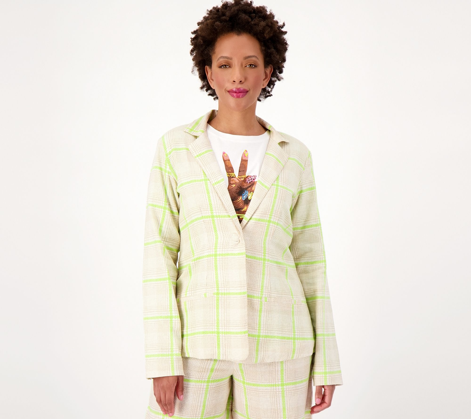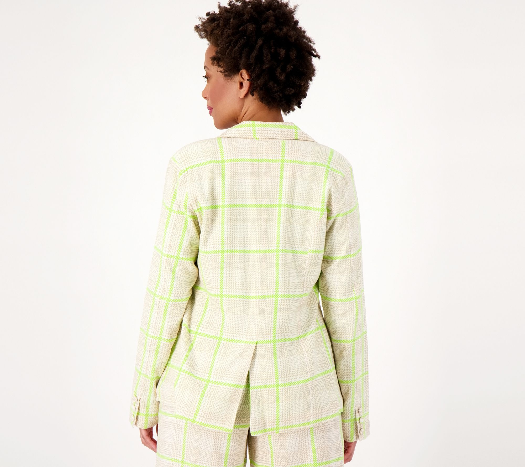 "As Is" Studio Park x Vanessa Herring Plaid Linen-Blend Blazer