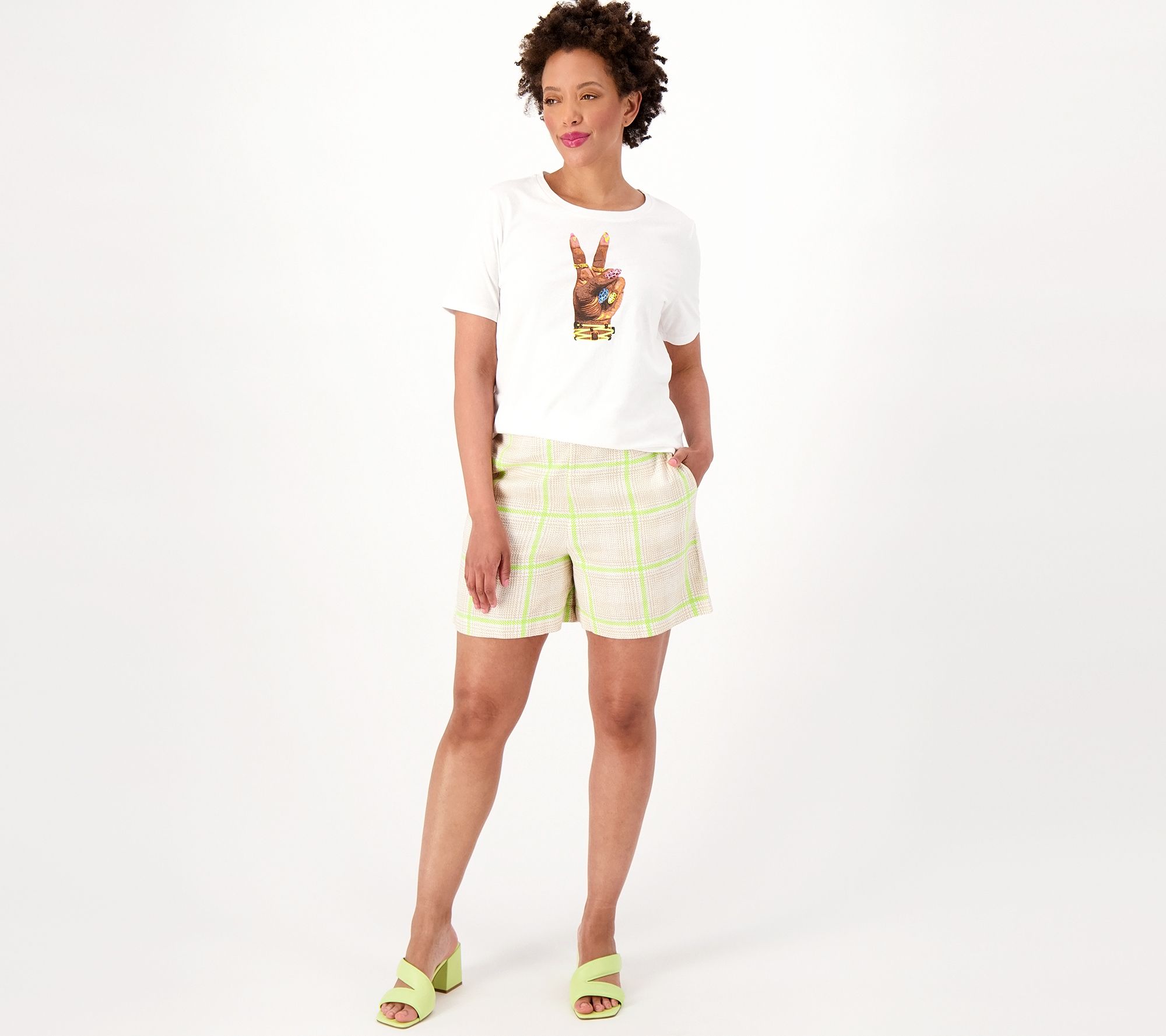 "As Is" Studio Park x Vanessa Herring Plaid Linen Blend Shorts