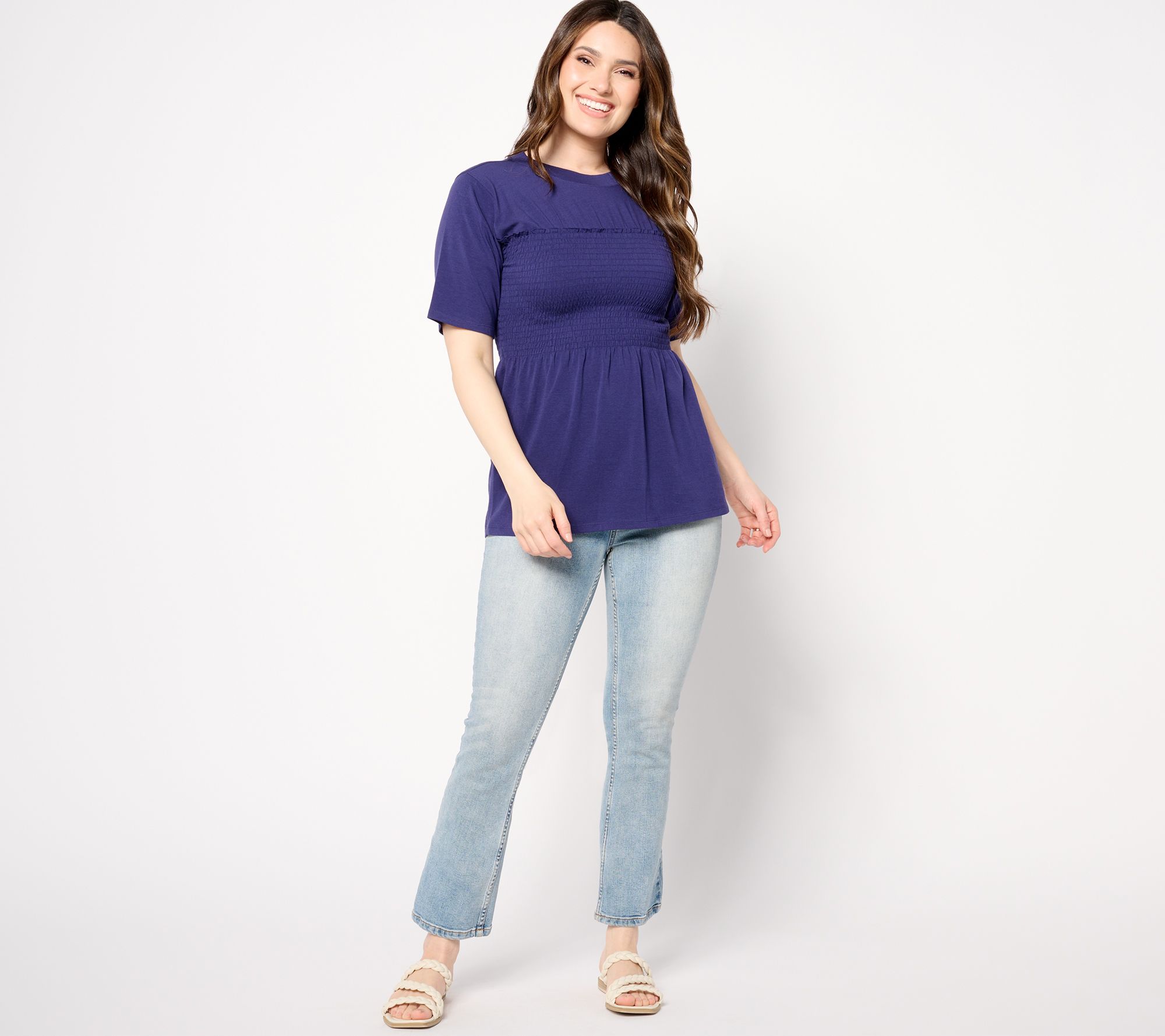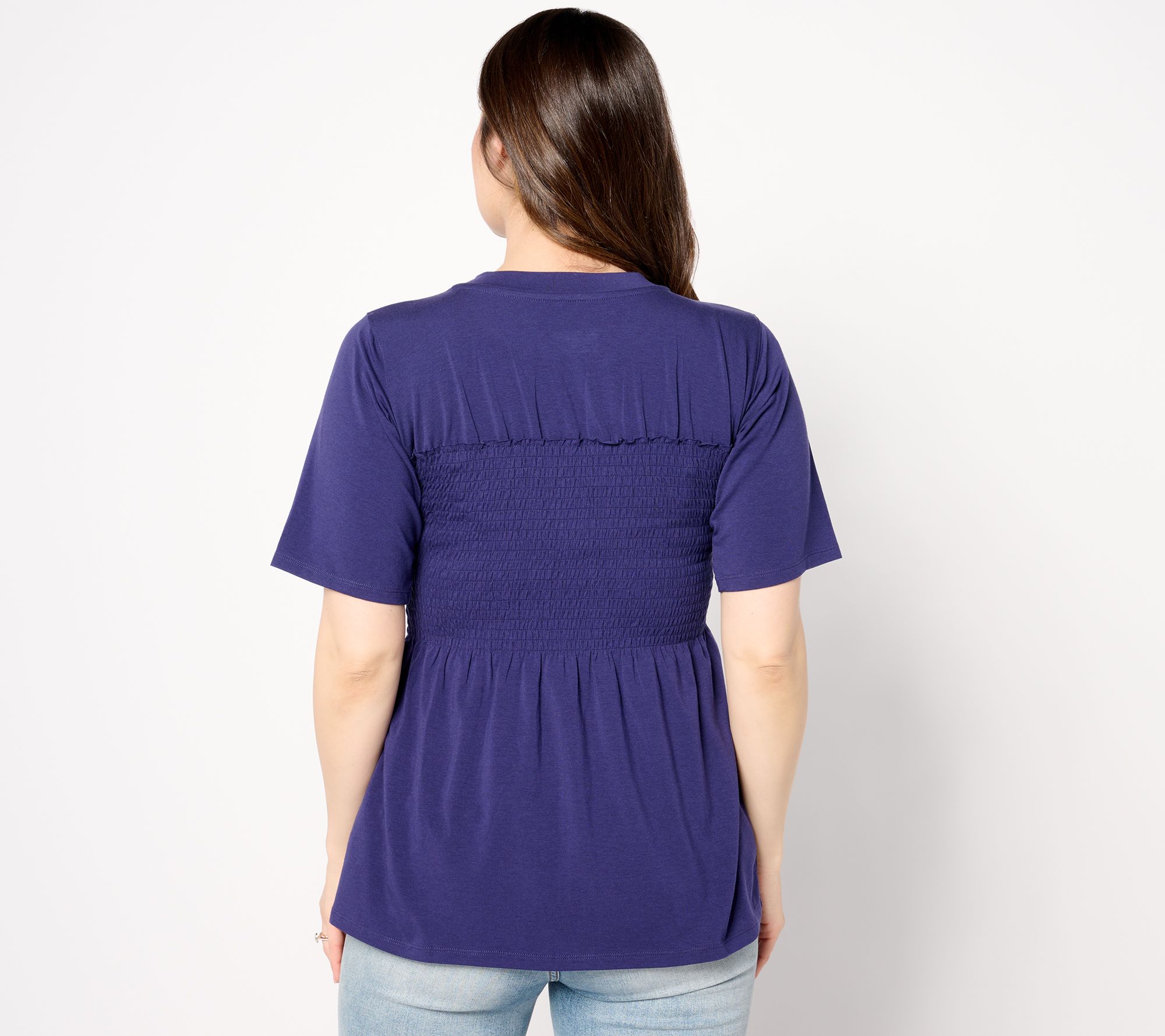Rock the smock! Clever gathering lends this peplum tee a flattering fit that's fit for everyday life or going out (hello, comfy arm coverage; good-bye, skimpy tanks!). From Studio ParkTM x Vanessa Herring.