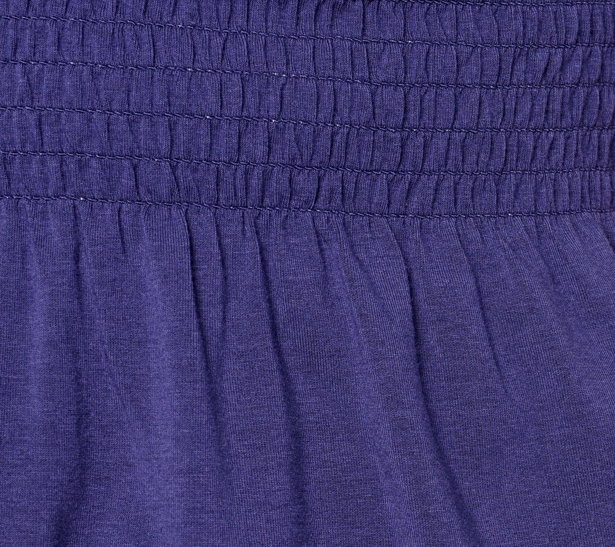 • Features: scoop neckline, elbow-length sleeves, smocked chest detail, ruched peplum hem