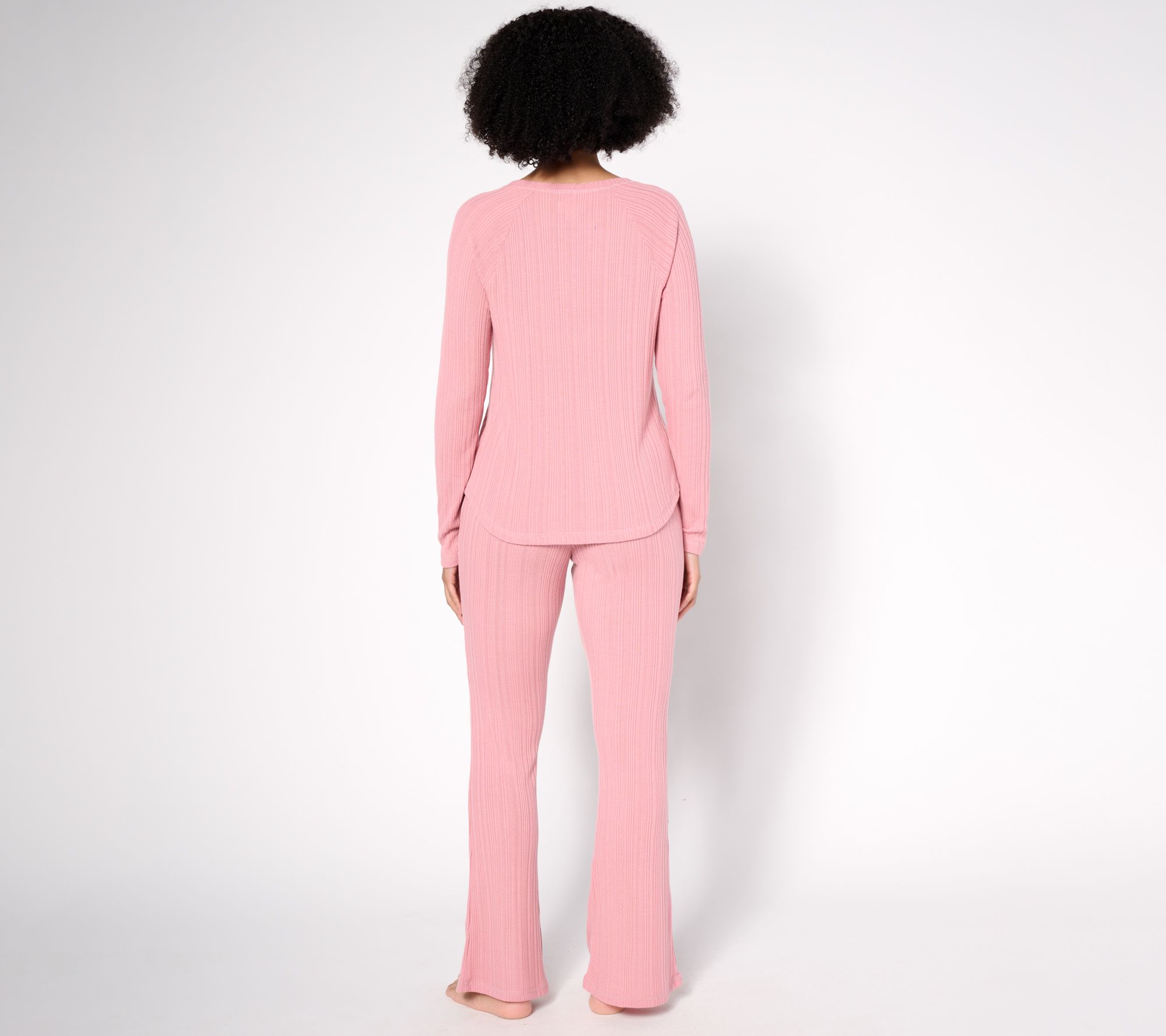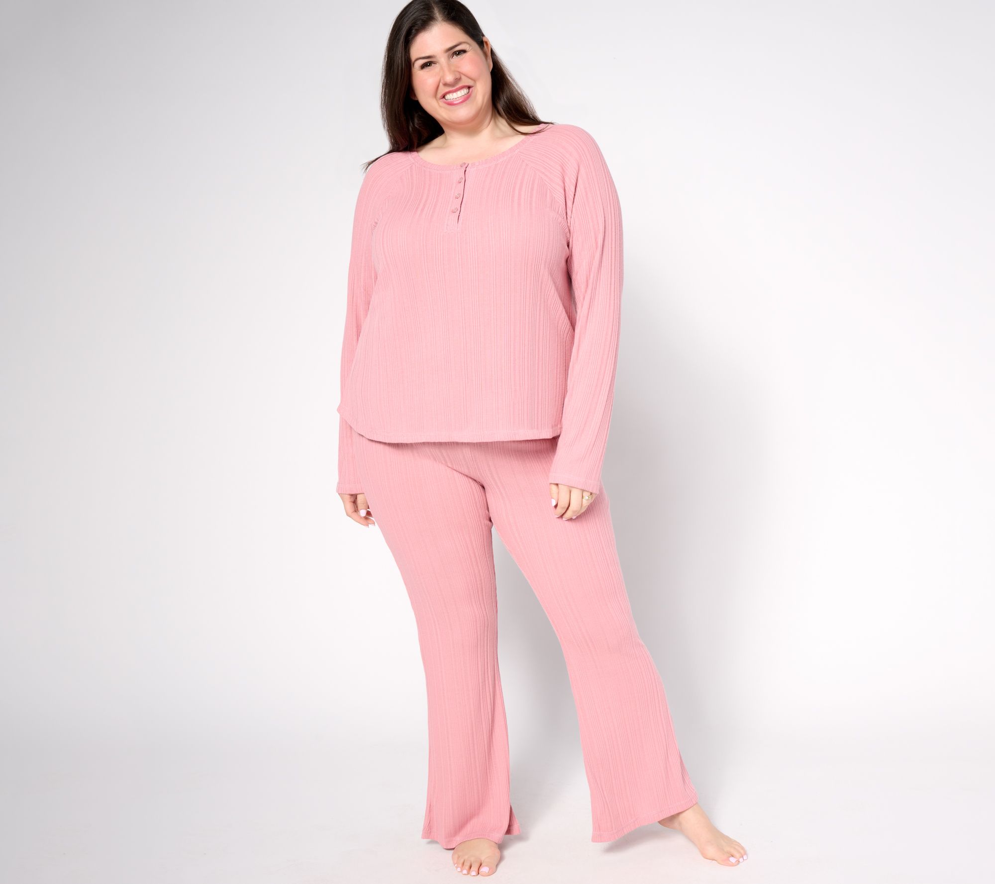 Activate relaxation mode and unwind in style with this ribbed lounge set. The long-sleeve Henley-style top and coordinating bottoms are the perfect pair to wear around the house on lazy weekends or for a cozy night on the couch. From Sunday Brunch.