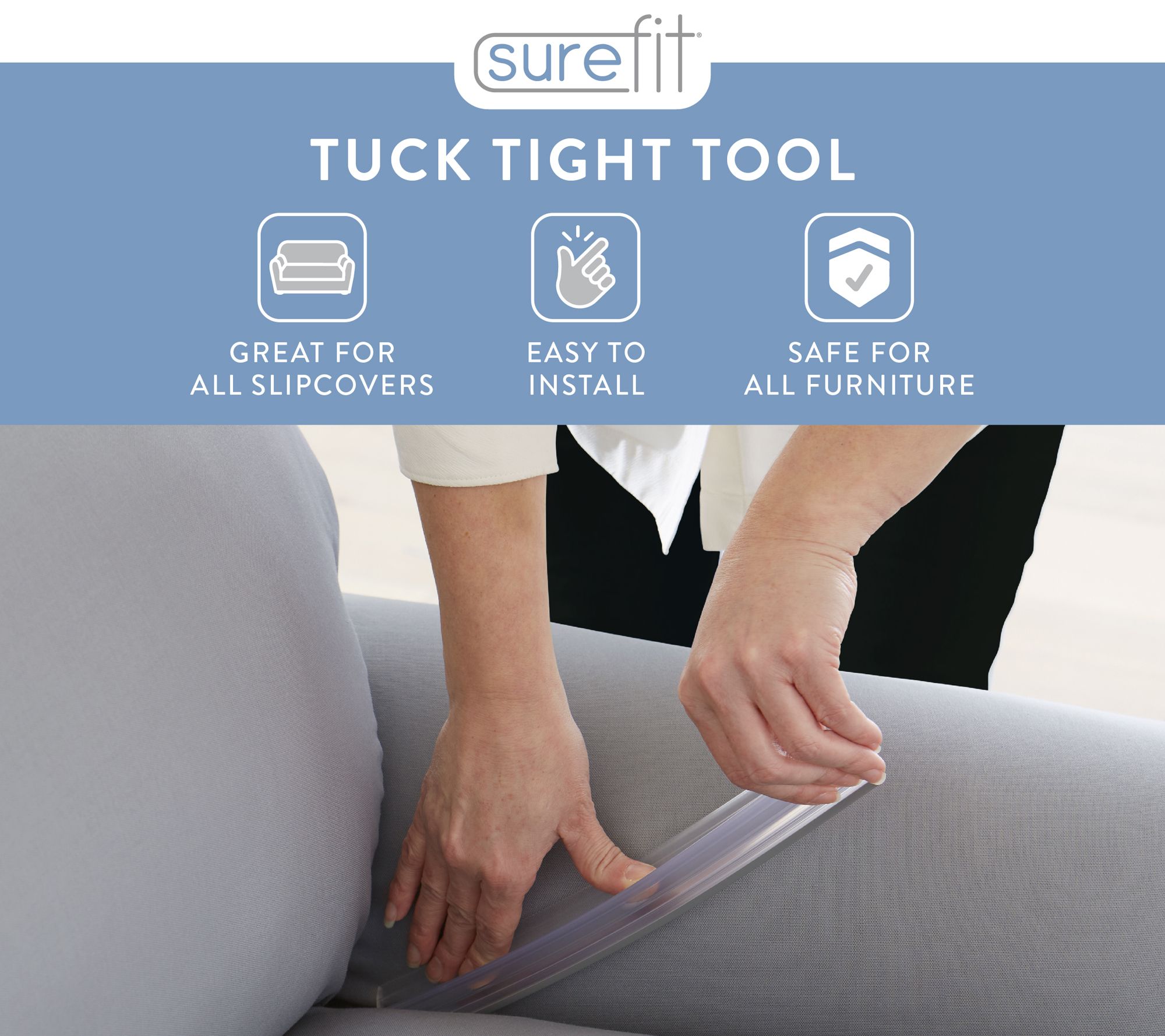 Designed for use with a sofa slipcover, these tuck tools provide a handy option for keeping your loose-fitting slipcover secure on your furniture. From SureFit.