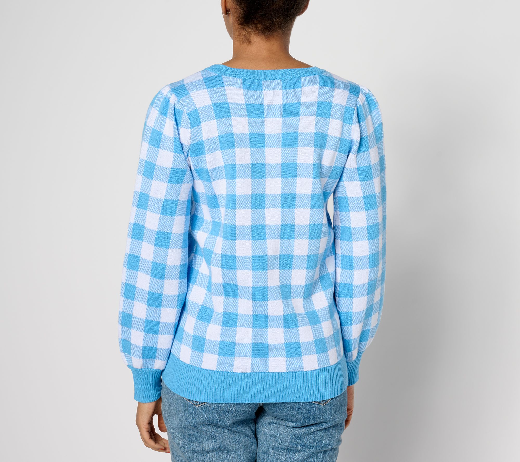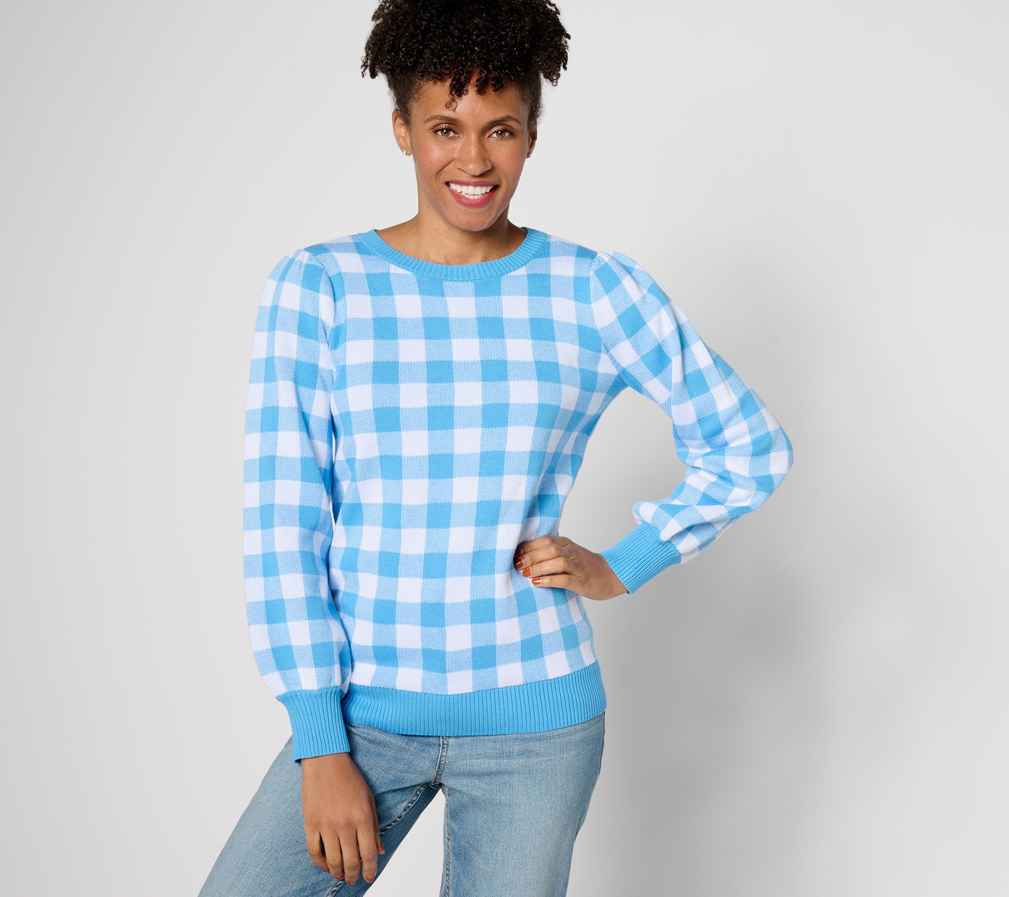 "As Is" Susan Graver Balloon Sleeve Gingham Print Sweater