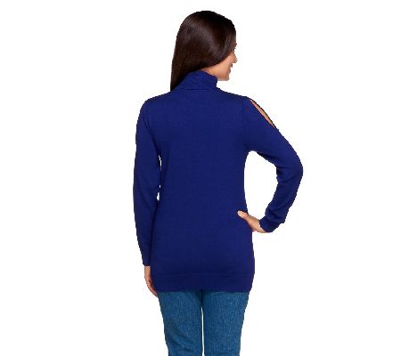 "As Is" Susan Graver Cold Shoulder Turtleneck Sweater