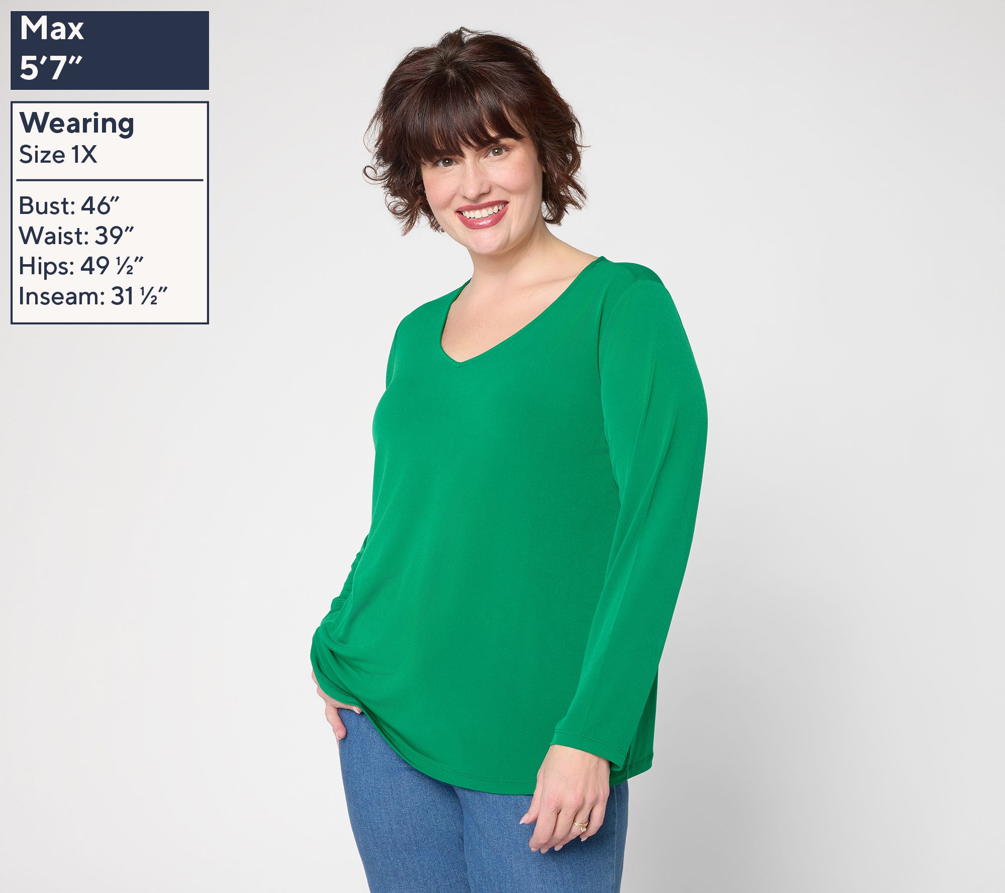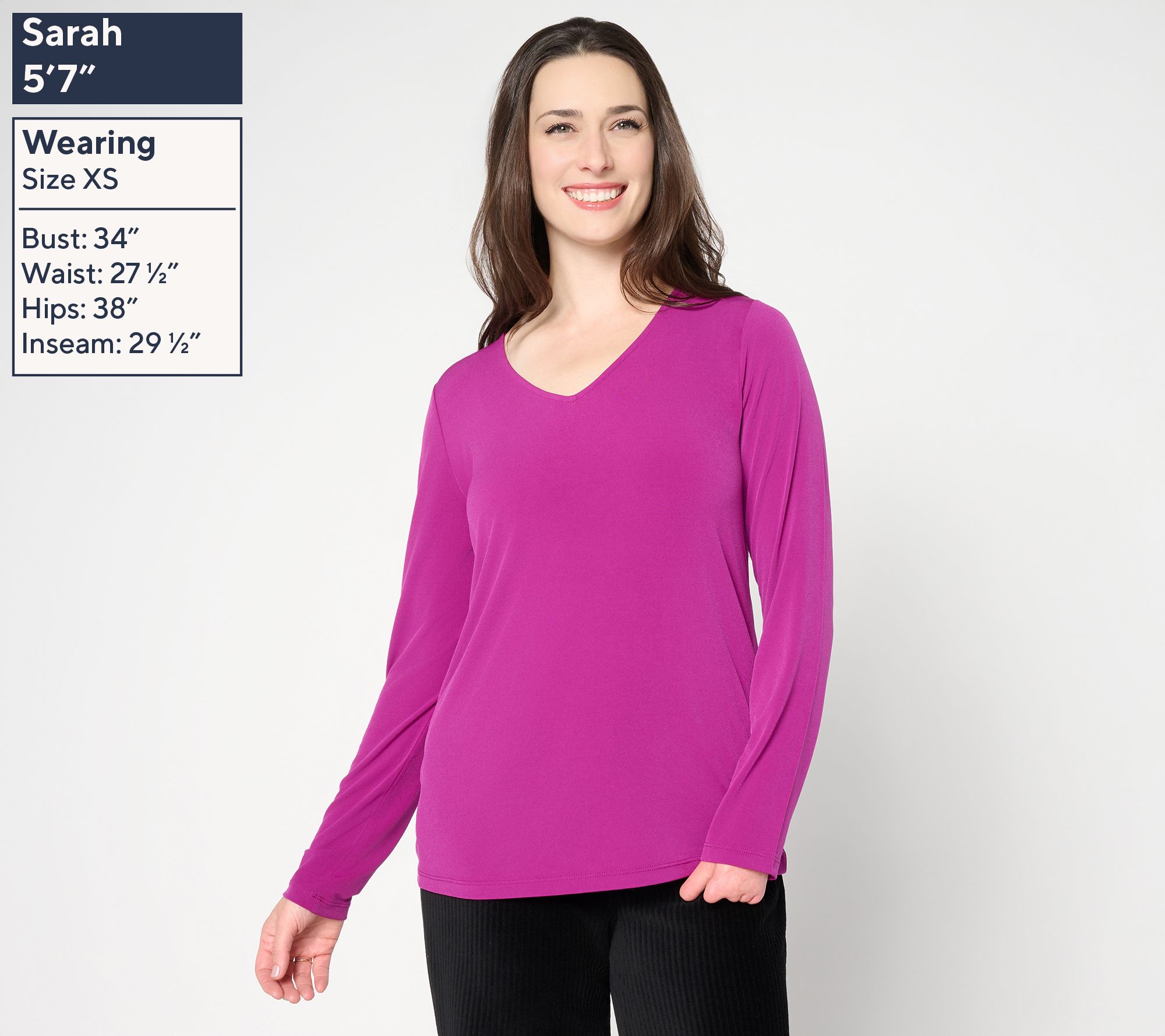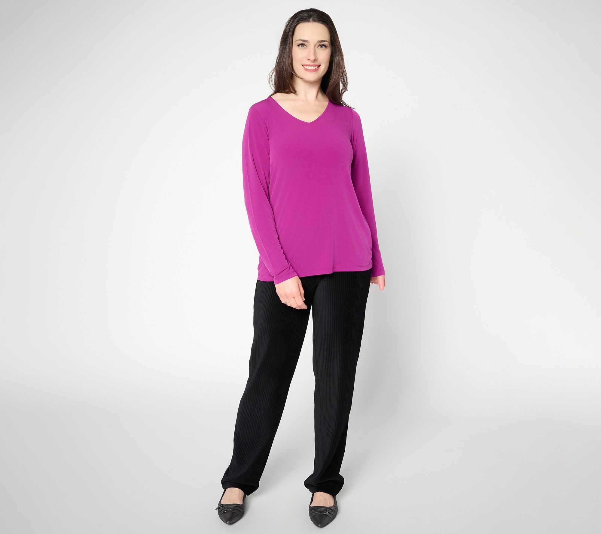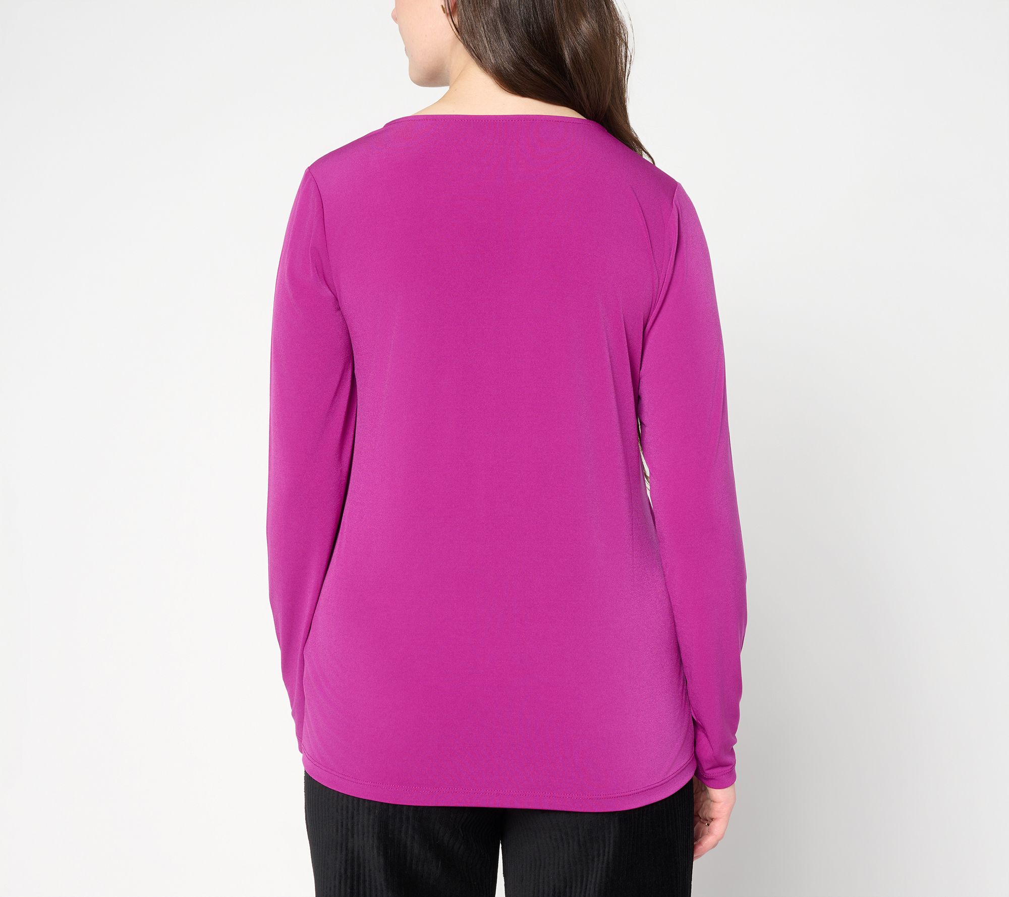 Whether you're heading to the office or unwinding with friends, this long-sleeve top adds easy elegance to any day. The beautifully draped Liquid Knit® offers a soft, fluid feel, while a flattering V-neck makes it simple to style with a favorite necklace. From Susan Graver.